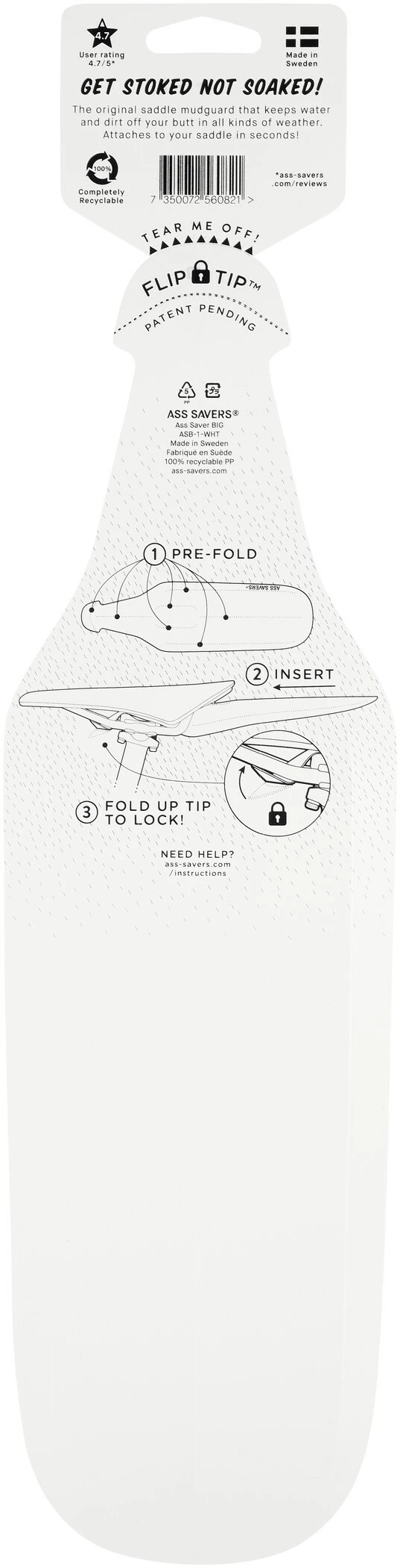 Der neueste Ass Saver verfügt über das neue FLIP-TIP-Befestigungssystem. Einmal montiert, klappen Sie einfach die Spitze des Ass Saver hoch und er wird sicher an den Sattelschienen befestigt.