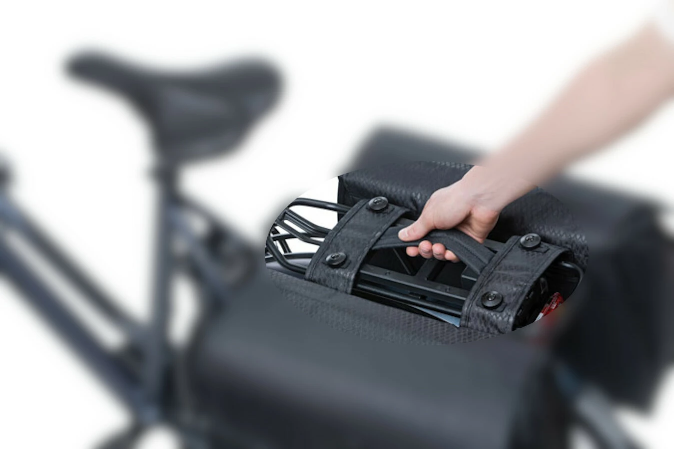 Der Basil Additional Handle ist ein stabiler schwarzer Henkel, geeignet für doppelte Fahrradtaschen von Basil mit einem Universal Bridge System. Die Ab- und Mitnahme einer Basil doppelten Fahrradtasche wird mit Hilfe dieses abnehmbaren Henkels einfacher gemacht. Was ist, wenn du nach einer ordentlichen Shoppingtour oder einem Supermarktbesuch mit einer vollen Fahrradtasche nach Hause kommst? In diesem Fall bleiben deine Sachen mit Hilfe dieses praktischen Henkels da wo du sie haben willst. Der Henkel ist aus hochwertigem Material gefertigt und man befestigt ihn leicht an doppelten Fahrradtaschen.
