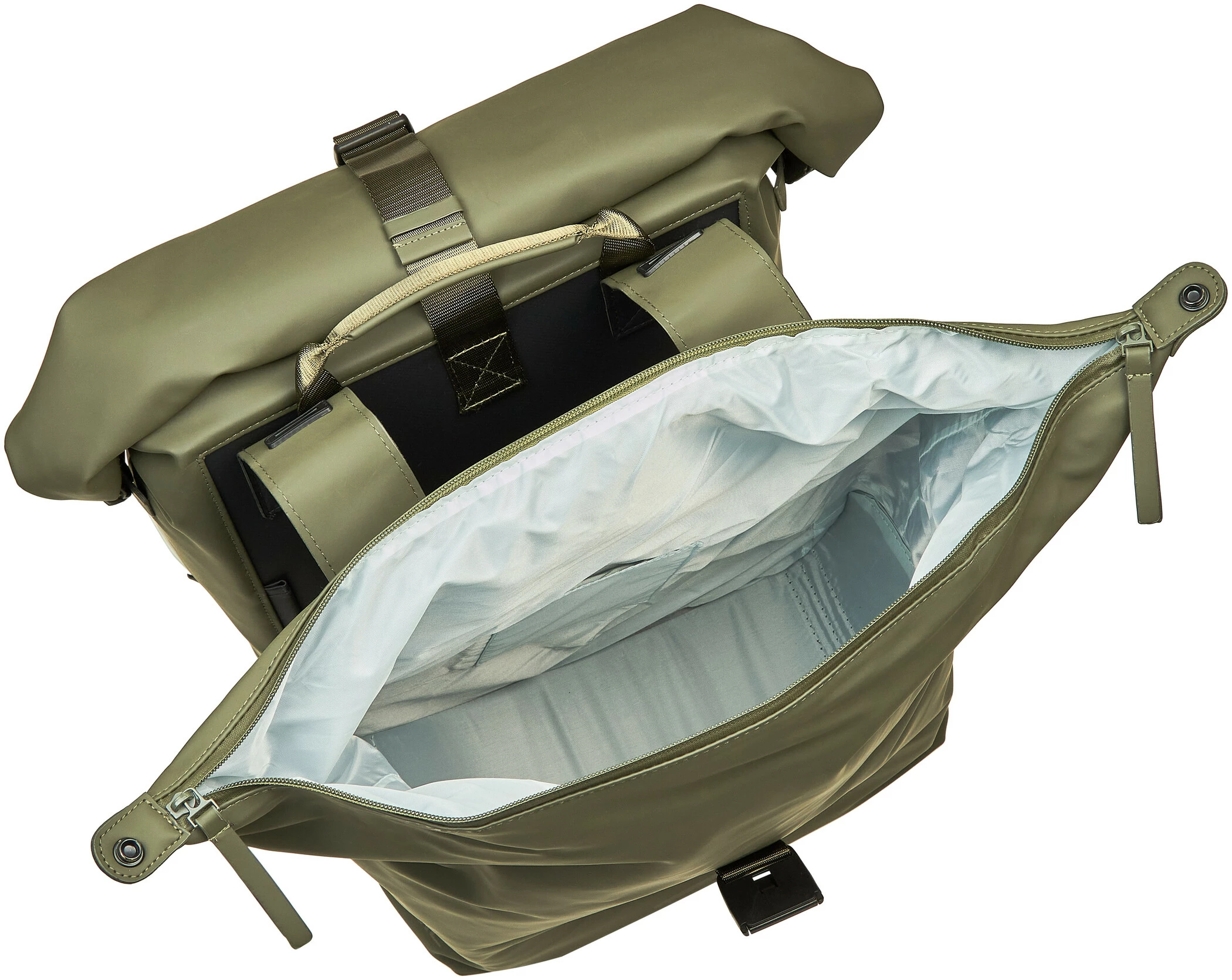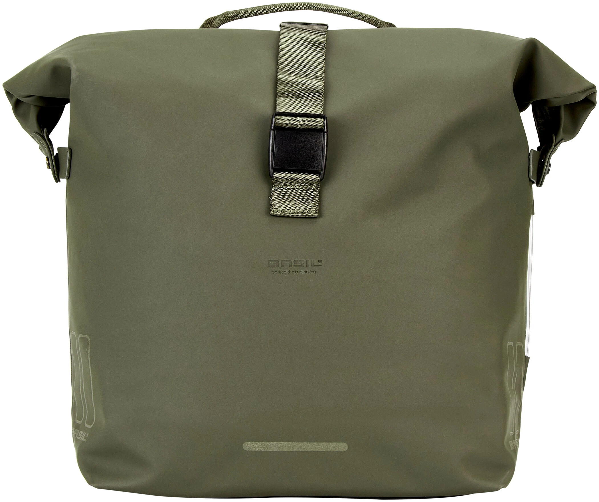 Du suchst nach einer geräumigen Fahrradtasche, die außerdem gut aussieht? Dann ist die Basil SoHo Doppelfahrradtasche Nordlicht in schwarzer Farbe etwas für dich. Hergestellt aus mattem PU-Material, das sich sehr weich anfühlt, mit einem Fassungsvermögen von 41 Litern. Die Tasche ist wasserdicht (IPX3), so dass deine Sachen immer trocken bleiben. Die Tasche wird mit einem Rolltop-Verschluss geschlossen, den du mit Druckknöpfen an den Seiten der Tasche befestigst.