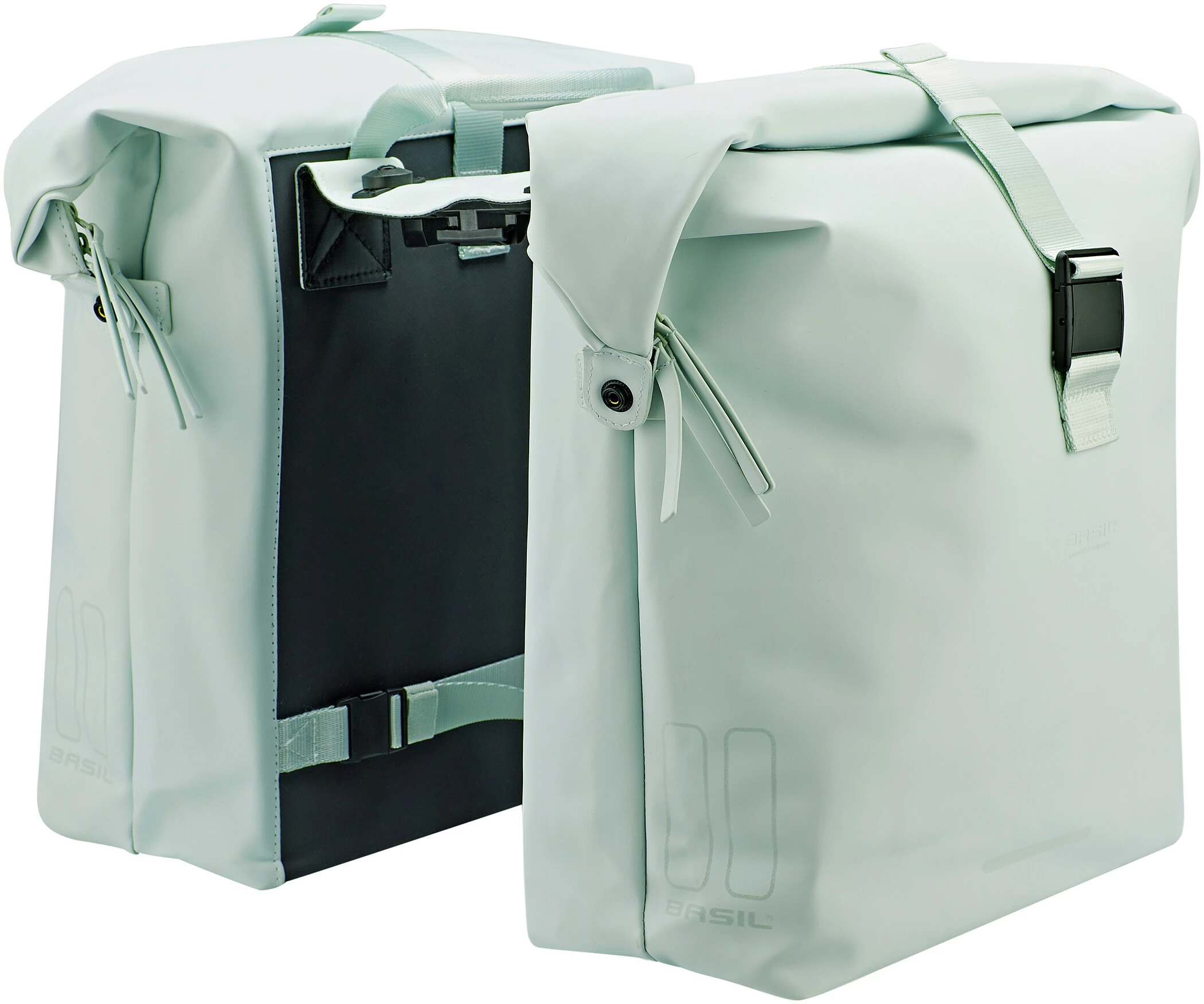 Du suchst eine geräumige Fahrradtasche, die außerdem auch schön aussieht? Dann ist die Basil SoHo Doppelfahrradtasche Nordlicht MIK in der Farbe Schwarz genau das Richtige für dich. Sie ist aus mattem PU-Material, das sich sehr weich anfühlt, und hat ein Fassungsvermögen von 41 Litern. Die Tasche ist wasserdicht (IPX3), so dass deine Sachen immer trocken bleiben. Du schließt die Tasche mit einem Rolltop-Verschluss, den du mit Druckknöpfen an den Seiten der Tasche befestigst.