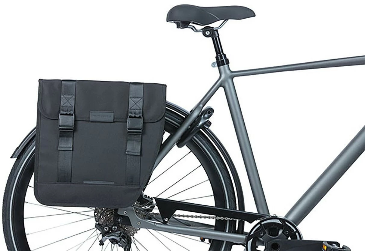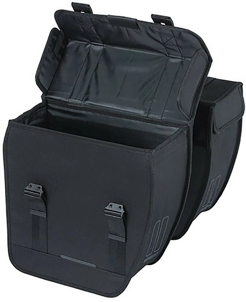 Auf der Suche nach einer doppelten Fahrradtasche mit genug Platz für deine täglichen Einkäufe oder für die Sachen bei einer Tagestour? Die Basil Tour Doppelfahrradtasche XL ist eine luxuriöse Fahrradtasche mit einem Inhalt von 35 Litern. Die Tasche ist formfest und hat Regenohren. Dadurch träufelt kein Wasser in die Tasche. Die Tasche ist aus wasserabweisendem 600D gefertigt und ist formfest. Bei der Tasche ist die Abrundung an der Vorderseite charakteristisch. Auf diese Weise vermeidest du es, dass du beim Fahren mit dem Hacken an die Tasche kommst. Die Tasche hat Klickverschlüsse, die sich einfach öffnen lassen. Du brauchst keine Kraft aufzuwenden, um die Tasche zu öffnen.