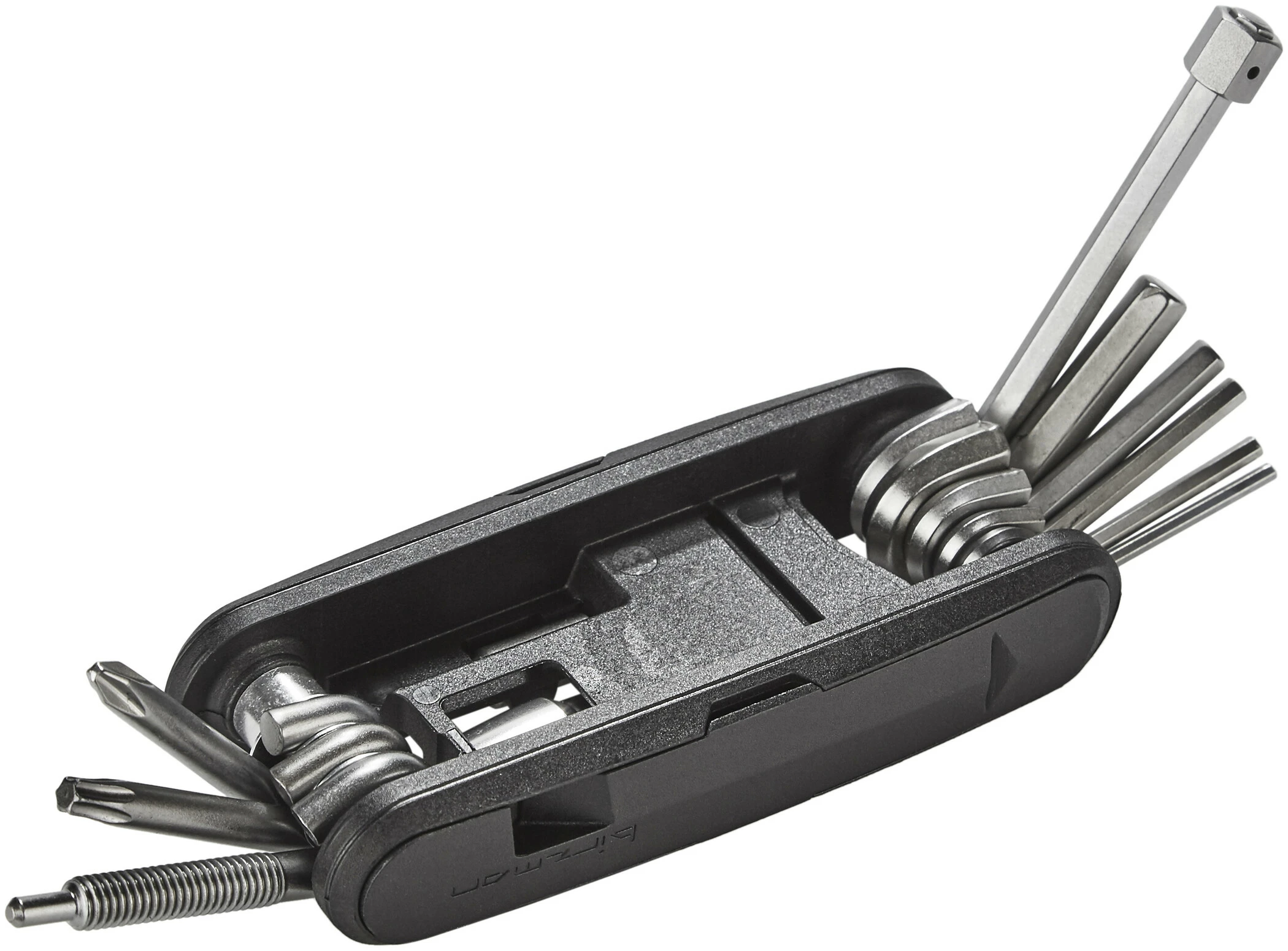 Das Birzman Diversity 17 ist ein praktisches Multitool mit Reifenheber Set, Kettennieter, Kettenmesslehre und CO2 Kartuschenanschluss mit kompatiblen Ventilkopf für Presta- und Schraderventile.