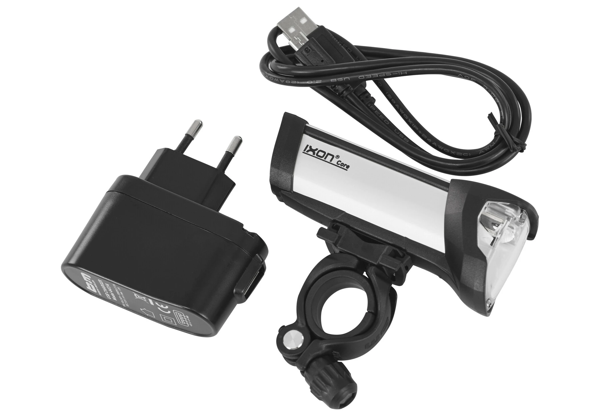 Für alle Räder zugelassen auf Deutschlands Straßen ist der neue kleine IXON Core Frontscheinwerfer mit IQ2-Technologie. Er bietet eine sehr gute und homogene Fahrbahnausleuchtung mit 50 Lux. Der Scheinwerfer ist per Klick abnehmbar. Der Universalhalter passt an alle Lenker. Das Aluminiumgehäuse mit der umlaufenden Weichkomponente sorgt für Schutz und schützt gegen Stöße und Eindringen von Feuchtigkeit.