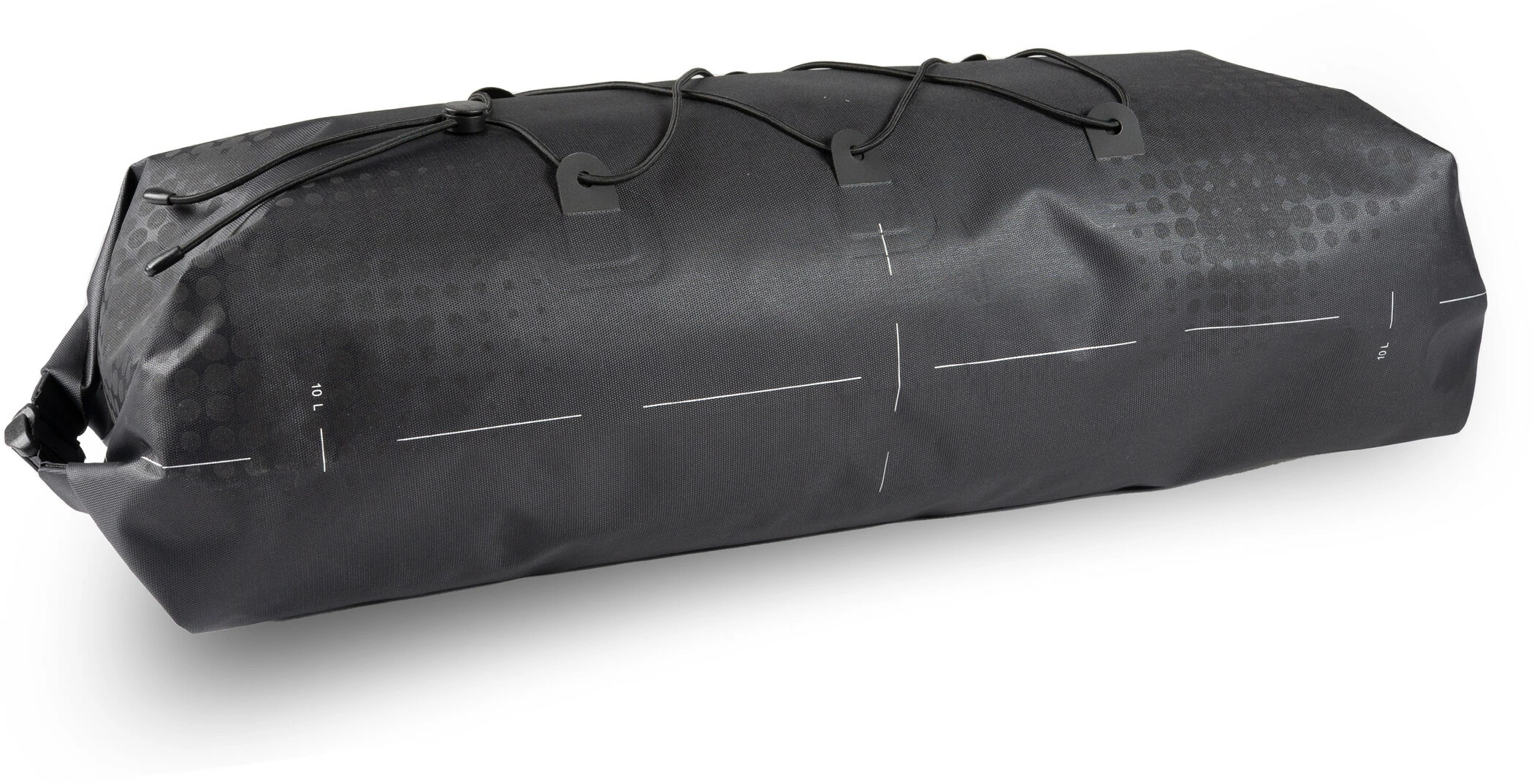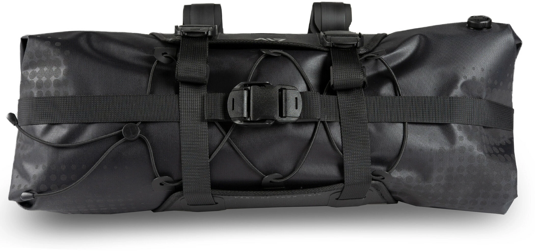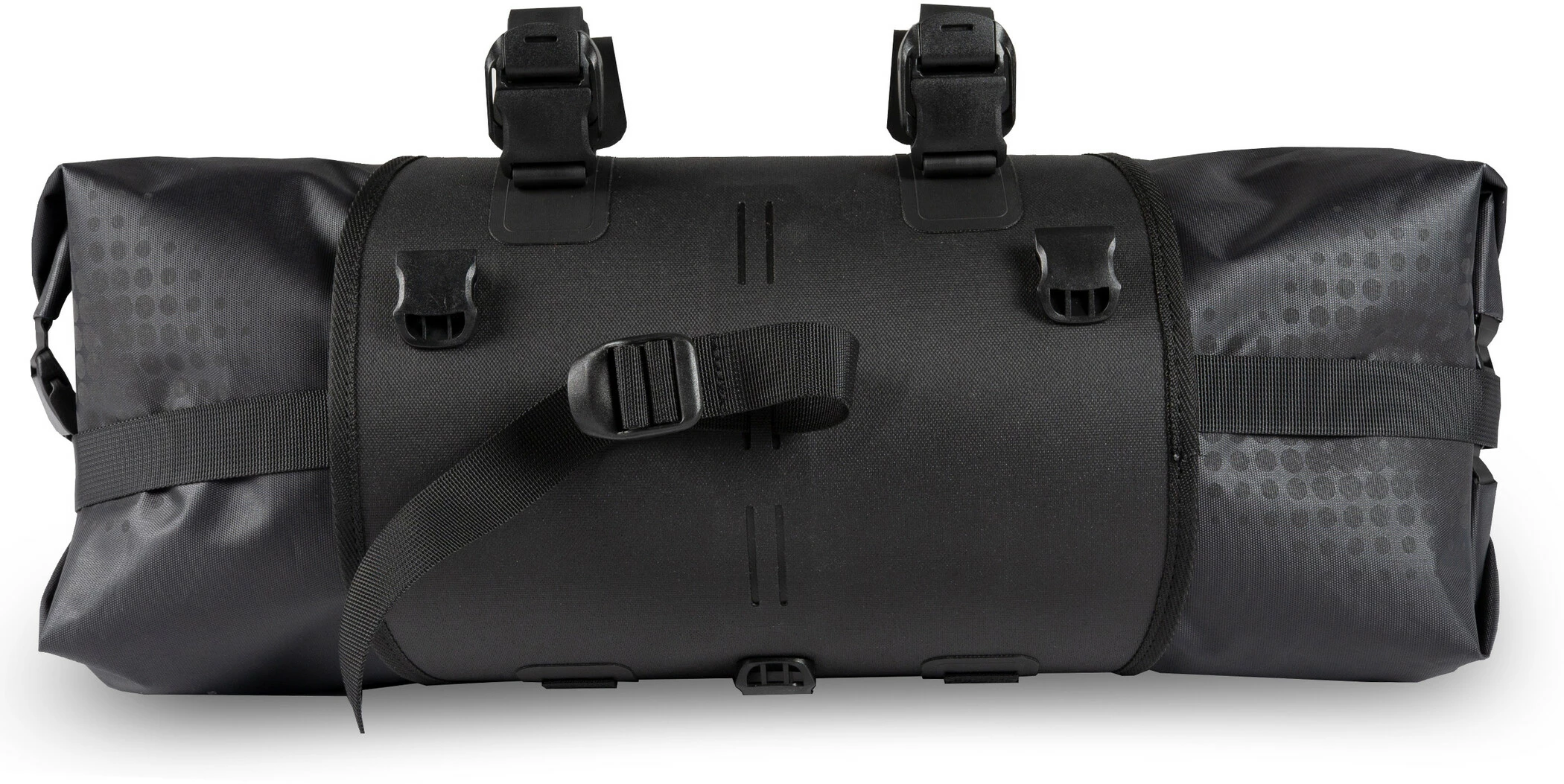 Dank des flexiblen MOLLE-Systems lässt sich der Harness sicher und wackelfrei an jedem Lenker anbringen. Die robuste, verschweißte Dry Bag wird einfach in den Harness gesteckt, mit zwei Schnellverschlüssen fixiert und kann per Strap auch in der Breite komprimiert werden.