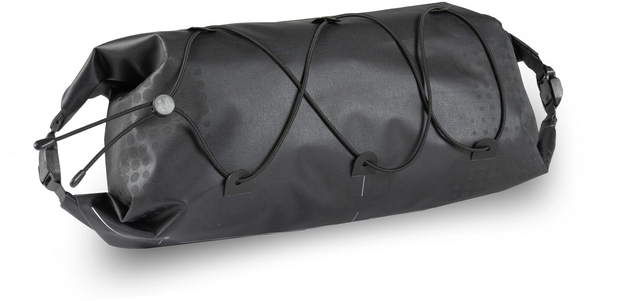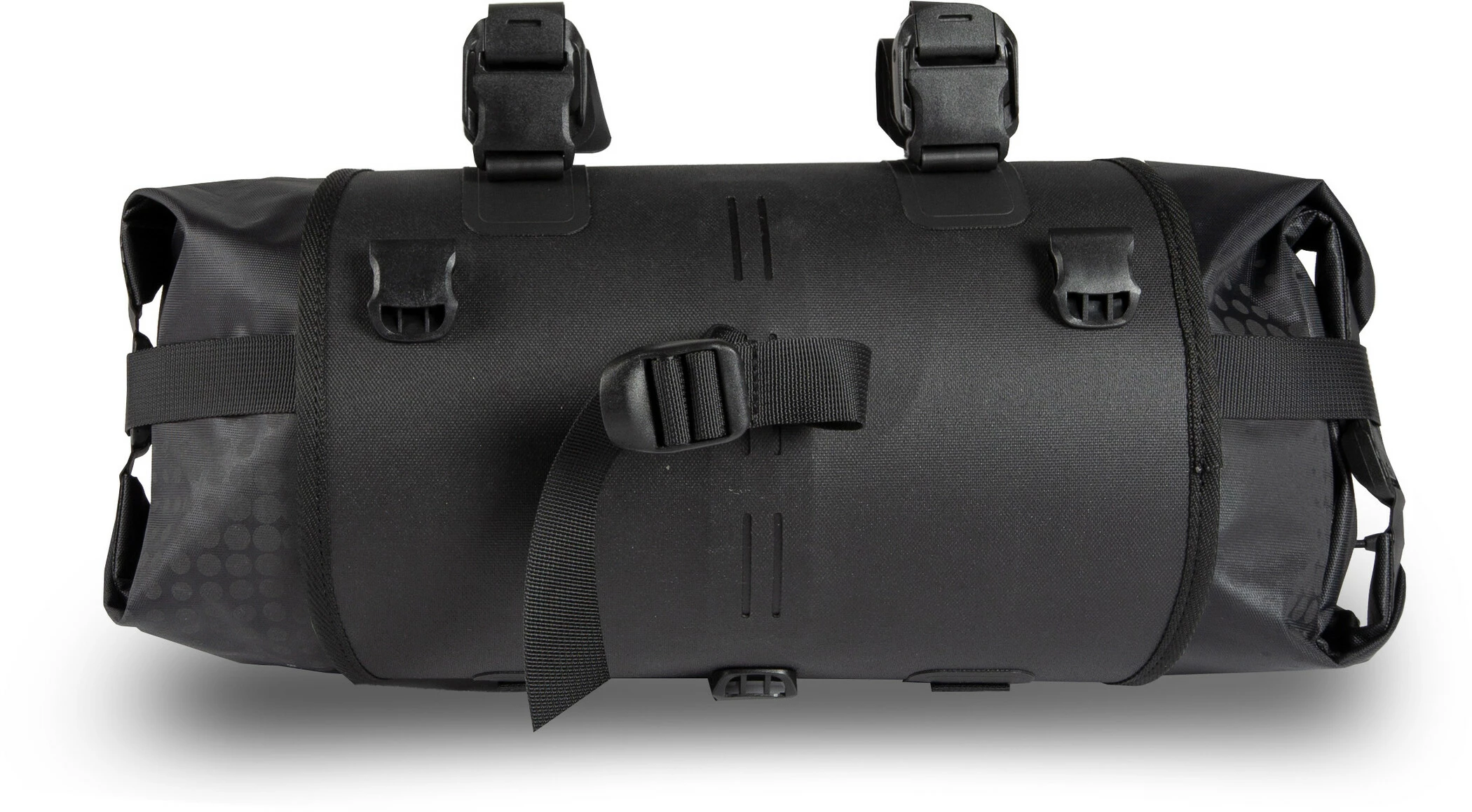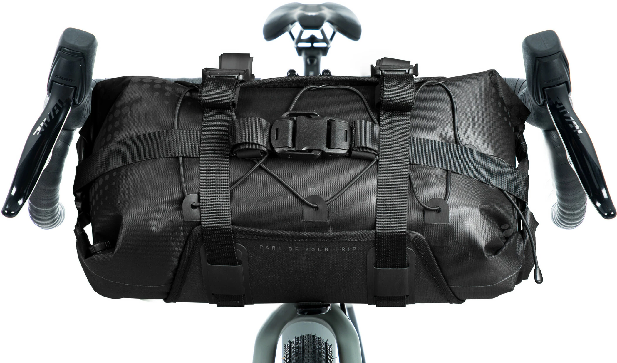 Dank des flexiblen MOLLE-Systems lässt sich der Harness sicher an jedem Lenker anbringen. Die robuste, verschweißte Dry Bag wird einfach in den Harness gesteckt, mit zwei Schnellverschlüssen fixiert und kann per Strap auch in der Breite komprimiert werden.
