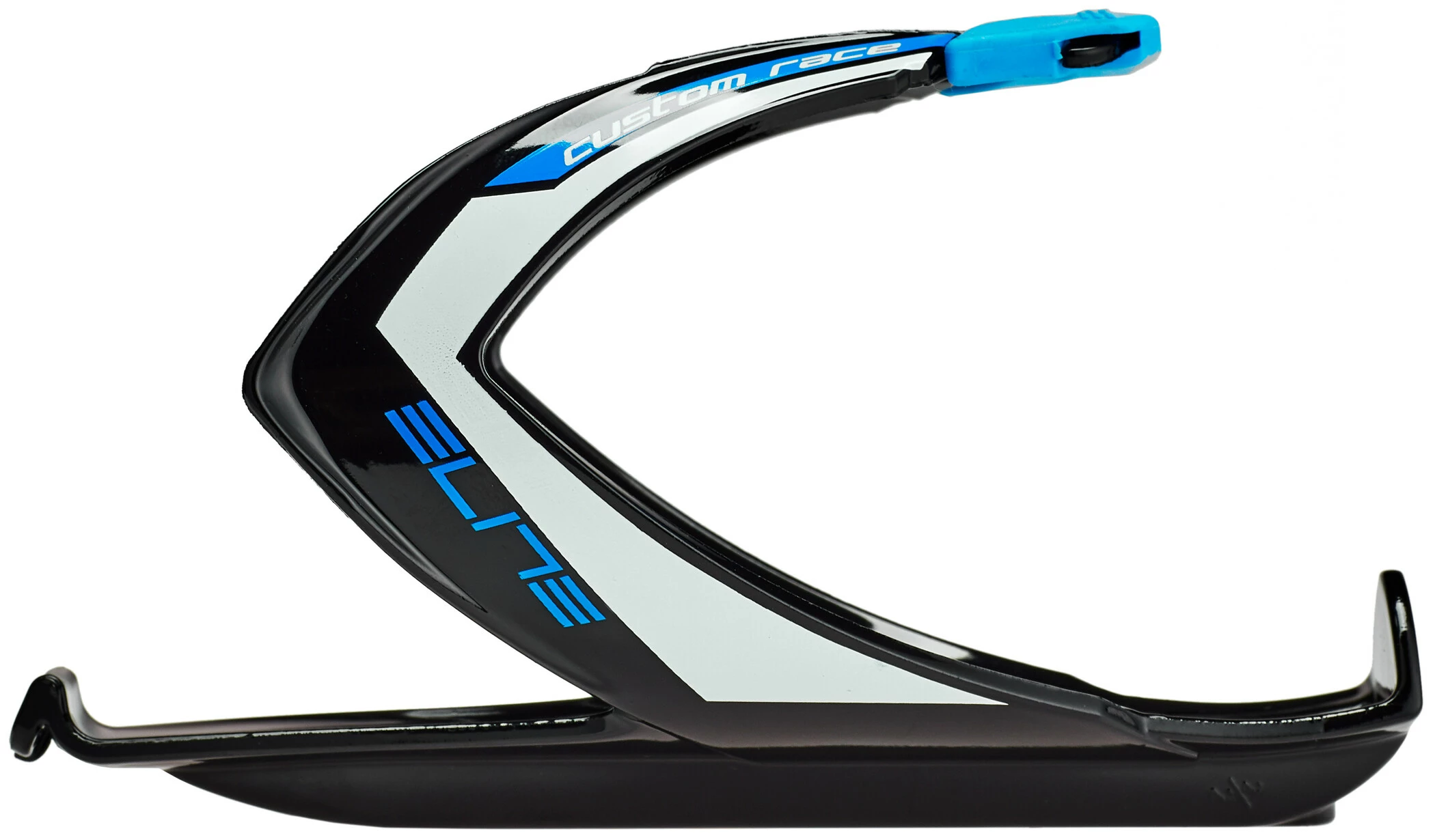 Custom Race war der erste Flaschenhalter, der in der Lage ist, sich an den Durchmesser der Trinkflasche anzupassen. Dies ist dank des innovativen selbstregulierenden Systems aus Gummi möglich, das mit Hilfe eines verstellbaren Elastomeraufsatzes, der sich an die Trinkflasche anpasst, funktioniert. Dieser Gummiaufsatz ermöglicht ein leichteres Herausnehmen der Trinkflasche sowohl in Richtung der Achse des Fahrrads als auch seitlich geneigt.