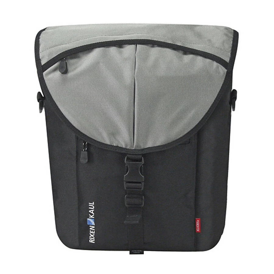 Flotte Einkaufstasche zum Einhängen in den KlickFix Gepäckträgeradapter. Auch kombiniert mit Korb oder Box einsetzbar. Eine Vortasche und ein zusätzliches Fach in der Taschenklappe bieten Platz für Geldbörse oder Schlüssel. Erweiterbarer Stauraum mit Kordelzug.