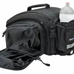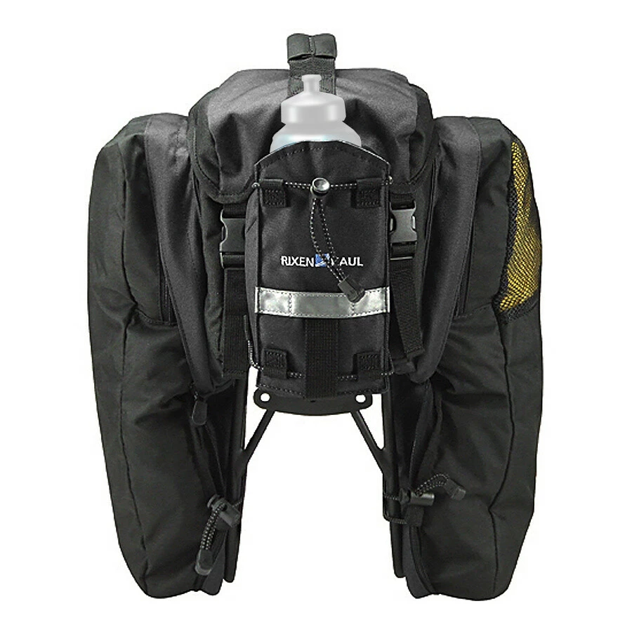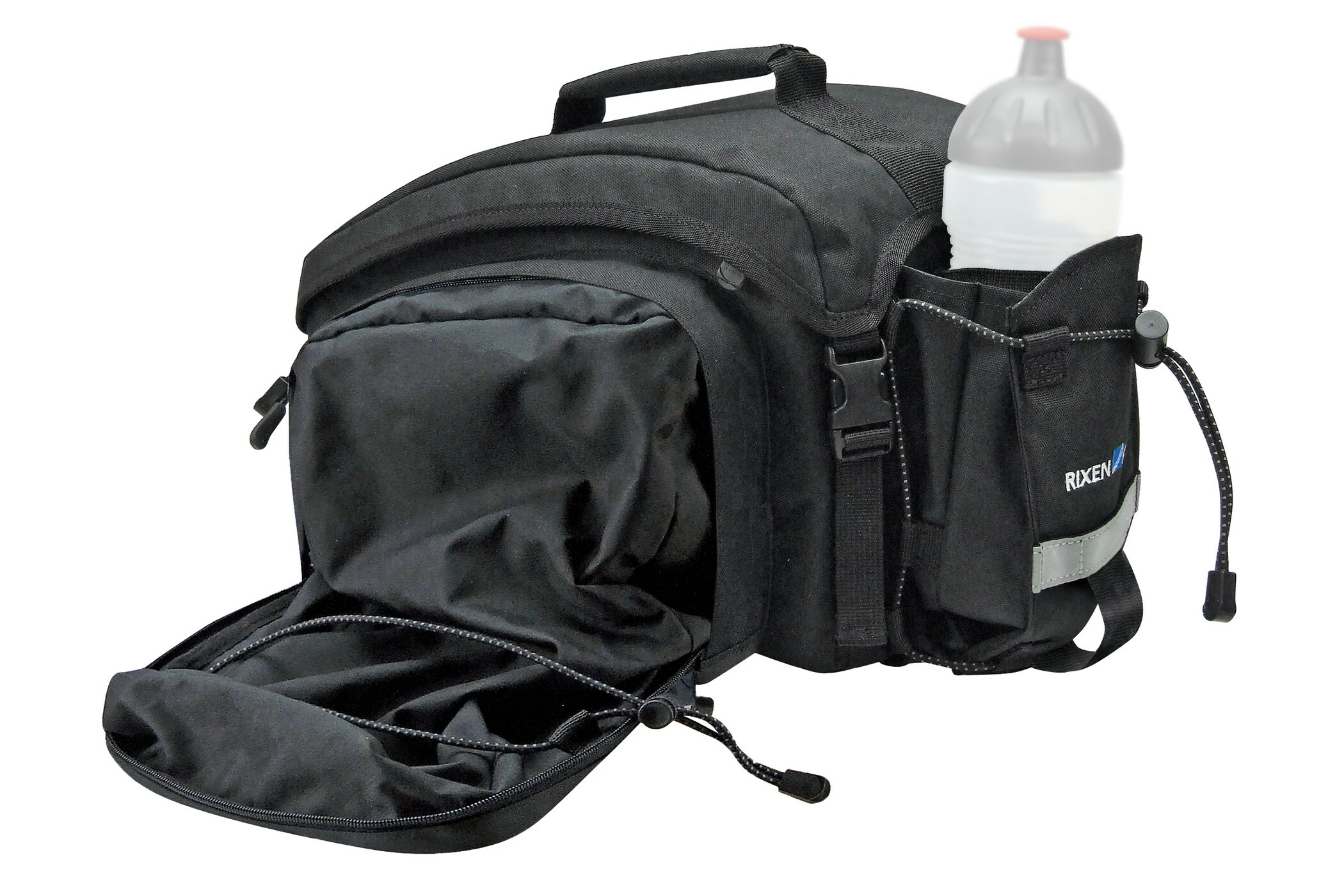Formstabile Tasche mit gepolsterten Seitenwänden. Das Hauptfach mit Doppel-Reißverschluss wird von einer zusätzlichen Stoffklappe abgedeckt, unter der auch Jacke oder Pulli verstaut werden können. Viel zusätzlicher Stauraum durch große, ausklappbare Seitentaschen, einseitig mit Netzfach. Die Tasche wird einfach auf den Freerack-Träger geschoben und verriegelt automatisch. Ausgeklappte Seitentaschen werden nicht komplett von der Regenhaube abgedeckt. Seitentaschen sind nur an Gepäckträgern mit seitlicher Abstützung verwendbar. Taschen mit Rackpack-Adapter können auch auf Tubus Trägern Cosmo Locc und Cargo verwendet werden.