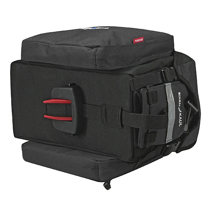 KlickFix Kupplung mit Gurtbandentriegelung am Taschenboden. Die Tasche wird einfach auf den Freerack oder Rackpacker Träger geschoben und verriegelt automatisch und sicher. Zum komfortablen Abnehmen des Zubehörs einfach am Gurtband ziehen!