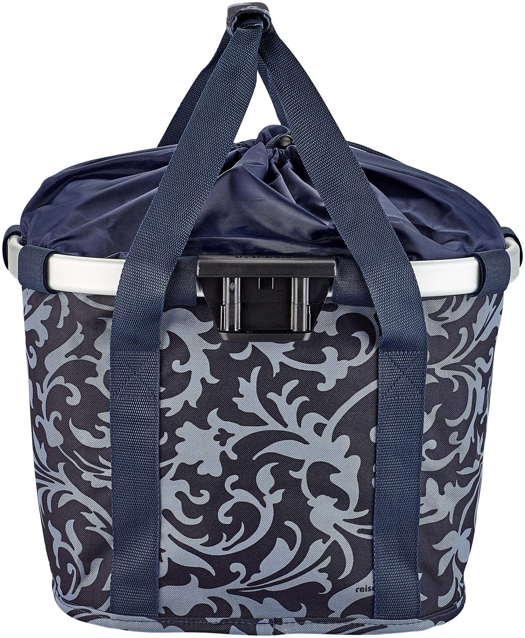 Ergebnis der Kooperation zweier starker Marken: Der schicke Textilkorb von Reisenthel mit dem markanten leichten Aluminiumrahmen – ausgerüstet mit Kupplung für den KLICKfix Lenkeradapter von RIXEN & KAUL. Zum Shoppen oder für einen entspannten Ausflug findet hier jeder ein passendes Dekor zum Rad. Mit dem Kordelzug wird der Korb ruckzuck verschlossen. Handy, Schlüssel & Co finden Ihren Platz in den praktischen Extrafächern und wenn der Korb mal länger verstaut werden muss, lässt er sich flach zusammenlegen.