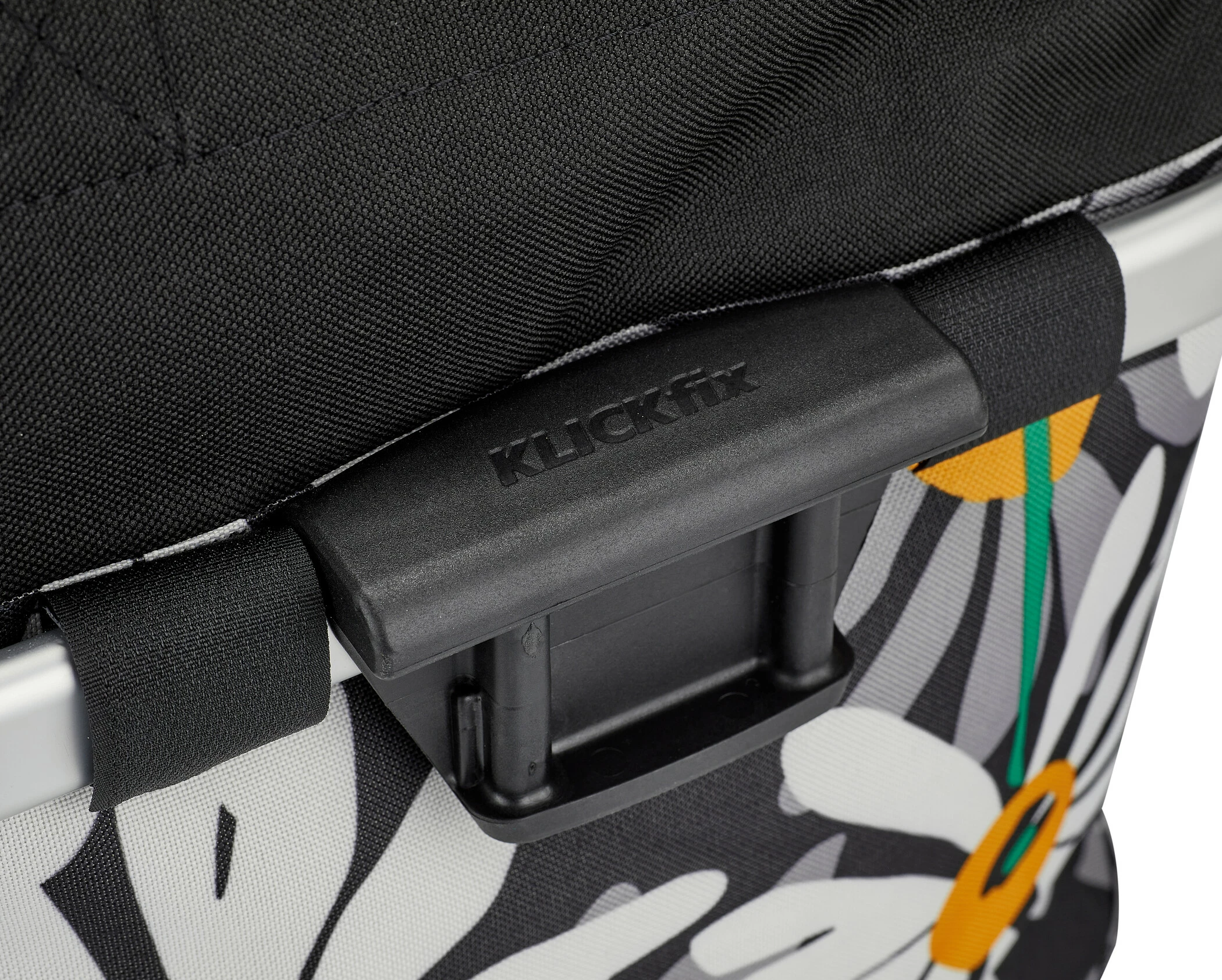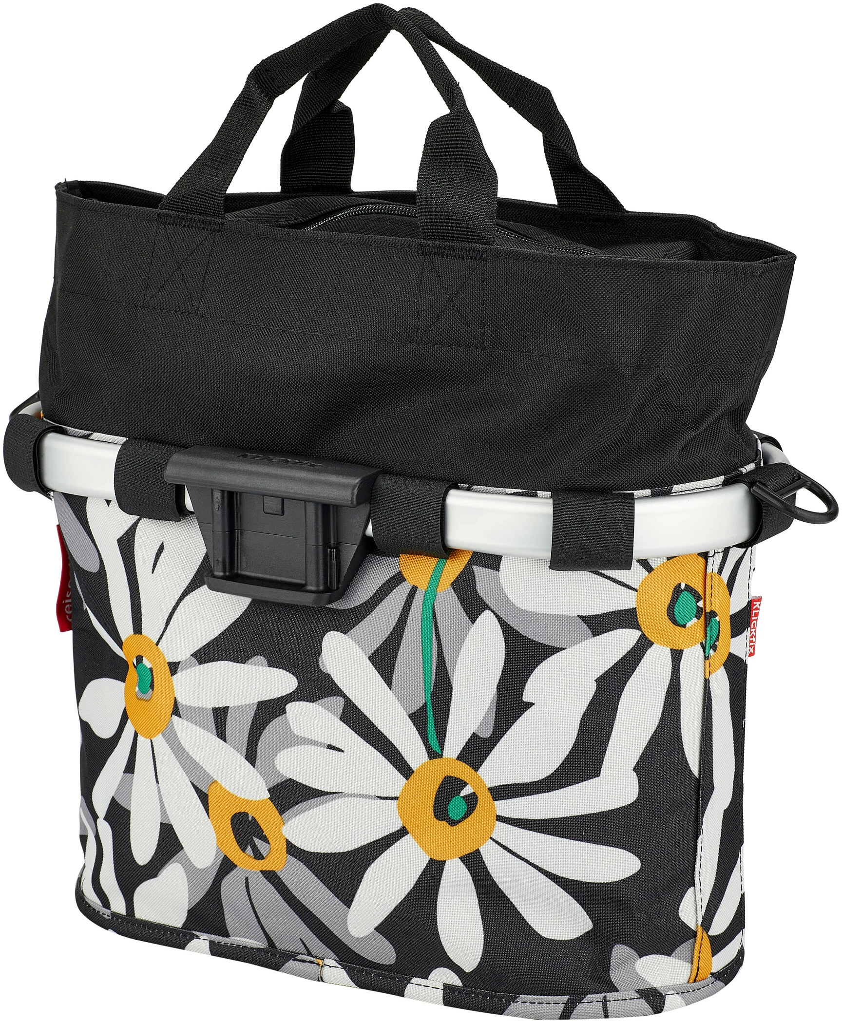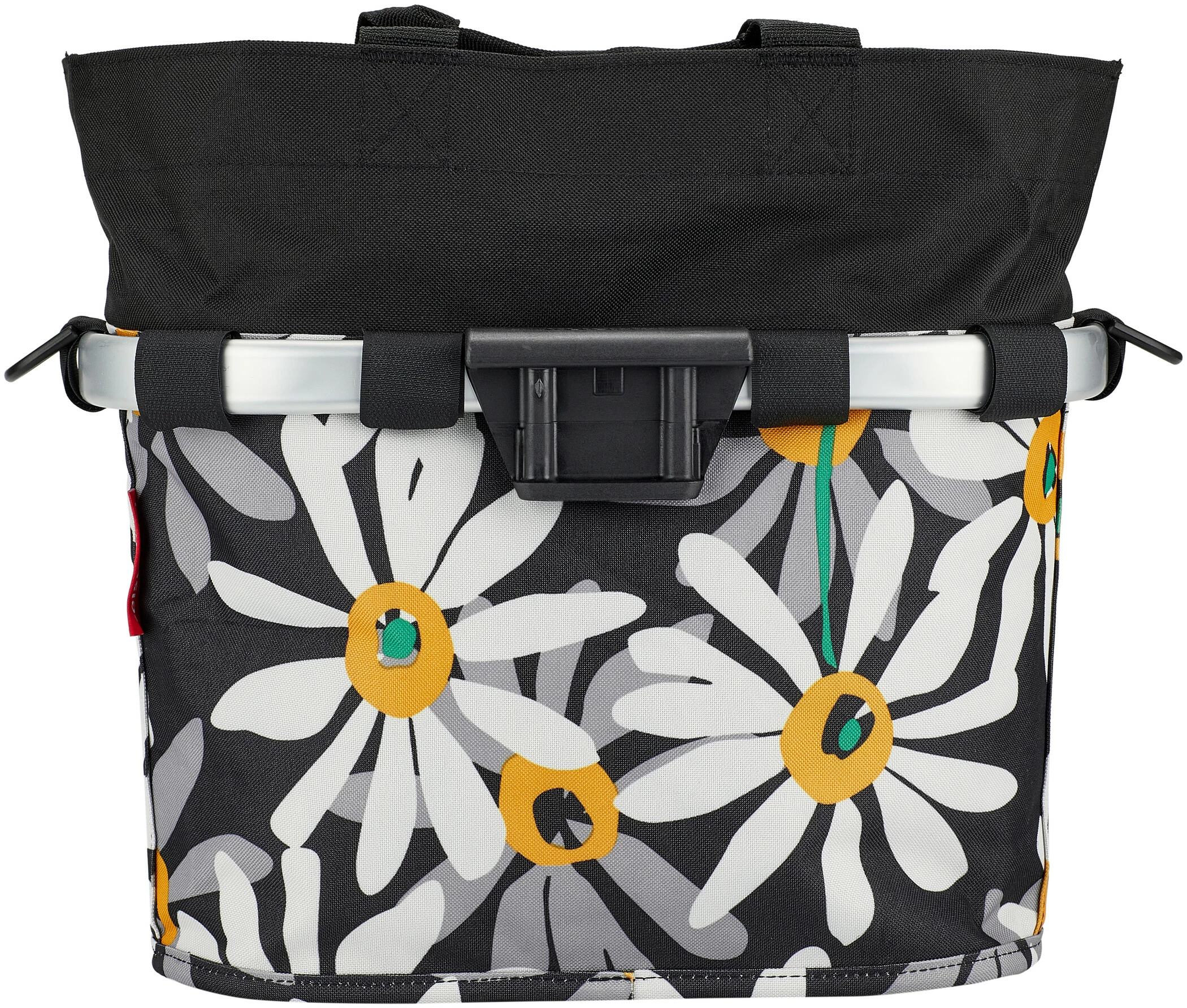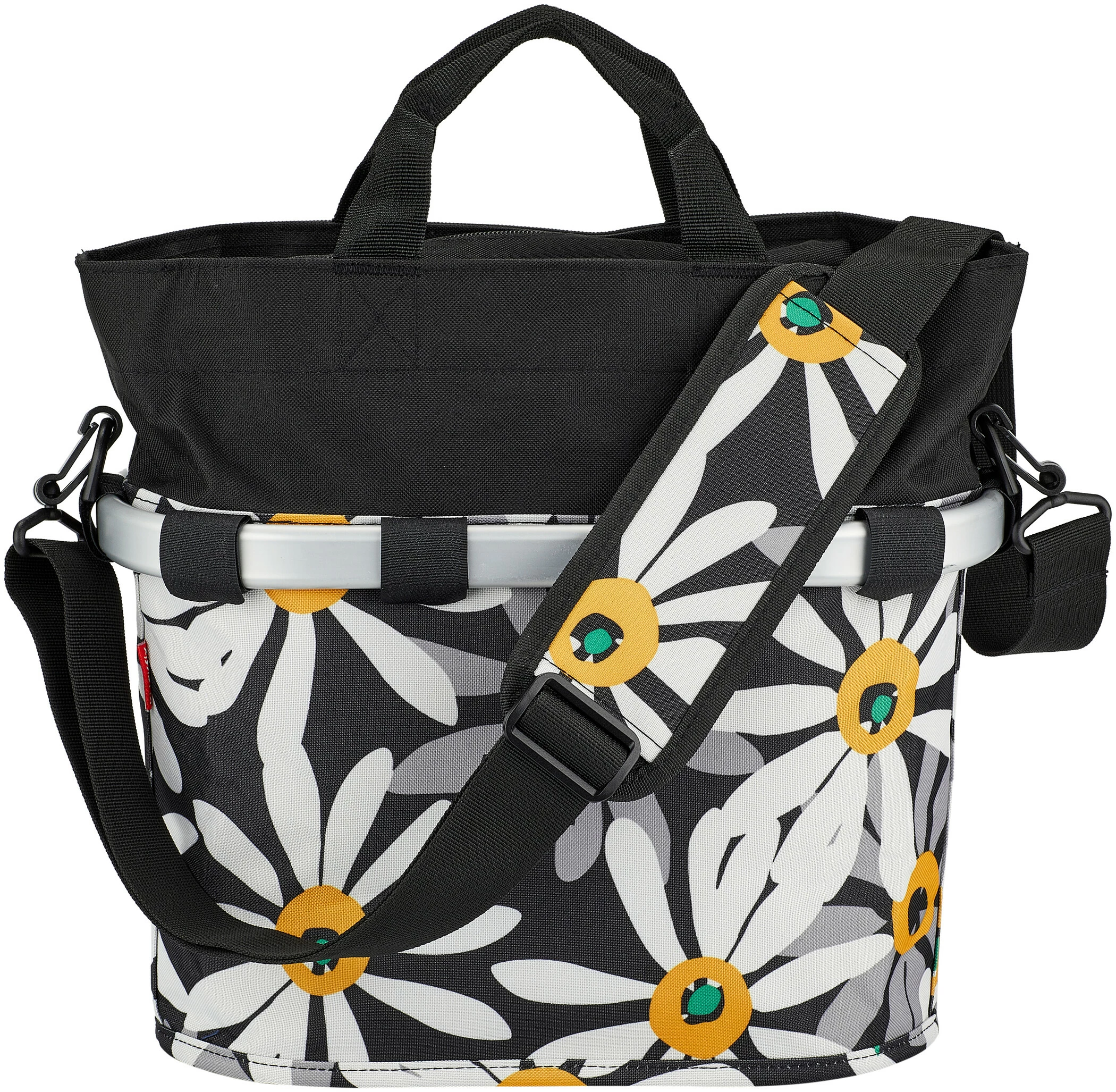Diese schlanke Variante des Fahrradkorbes, die mehr Handtasche als Korb ist, wirkt durch ihre ovale Form und den kontrastierenden Kragen besonders elegant. Kontrastierender Kragen mit Griffen und Reißverschluss. Innentasche mit Reißverschluss und abnehmbarem Schultergurt, abnehmbare Versteifungsstreben.