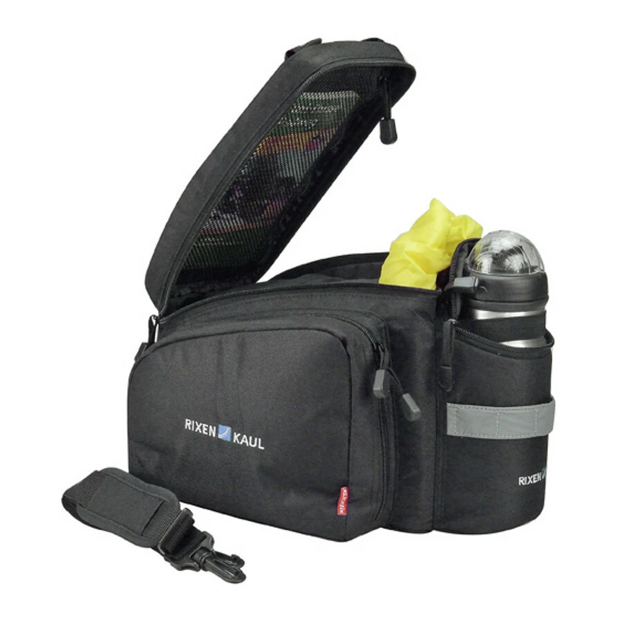 Multifunktionale Tasche mit Bodenkupplung zum Anklicken an den Gepäckträgeradapter oder Pletscher Dual Träger. Großes Hauptfach mit Inneneinteilung, Deckel mit Netzfächern, kombinierter Tragegriff und Spanngurt zum verzurren von Bekleidung, rückseitige Tasche im Bottle-Maß, abklappbare Seitentaschen für zusätzlichen Stauraum, signalgelbe Regenhaube, abnehmbarer Schultergurt, Reflektor und Lampenhalter.