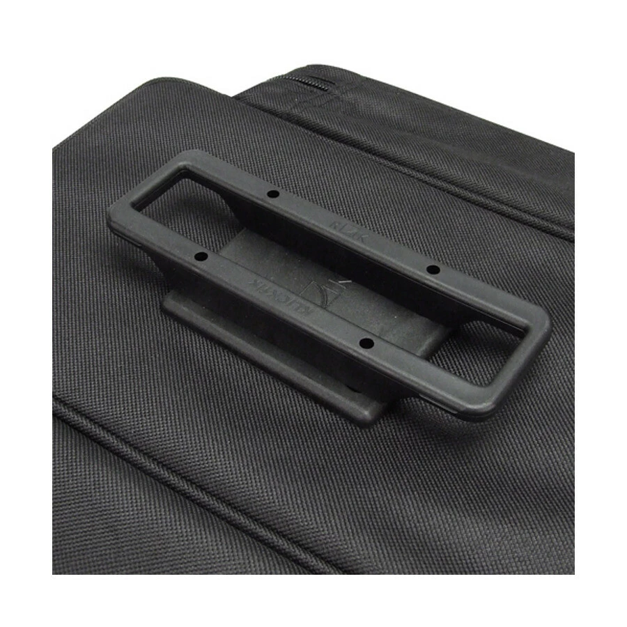 Ausgeklappte Seitentaschen werden nicht komplett von der Regenhaube abgedeckt. Seitentaschen sind nur an Gepäckträgern mit seitlicher Abstützung verwendbar.