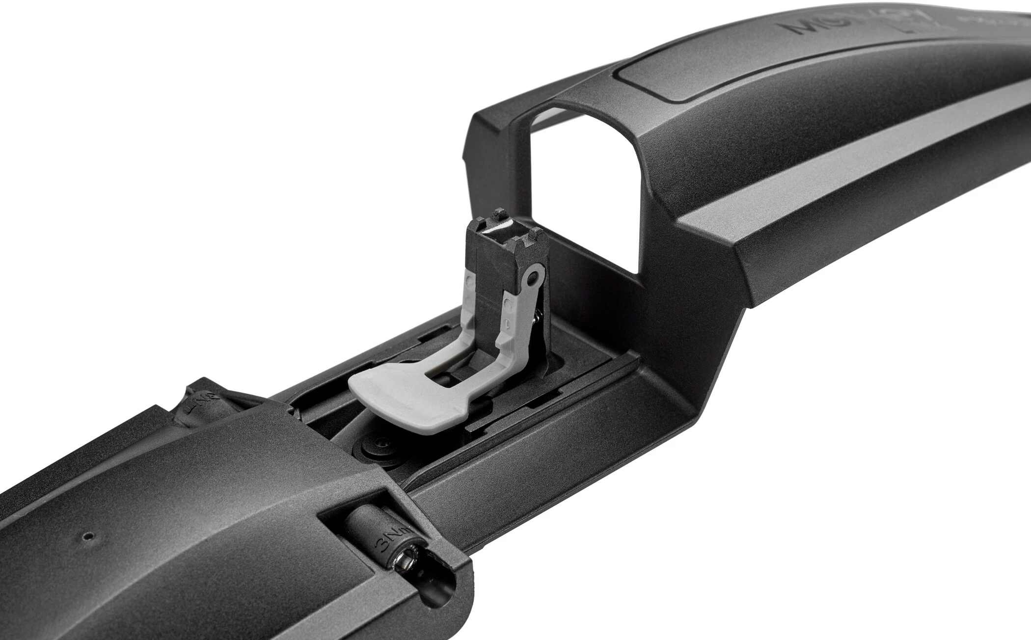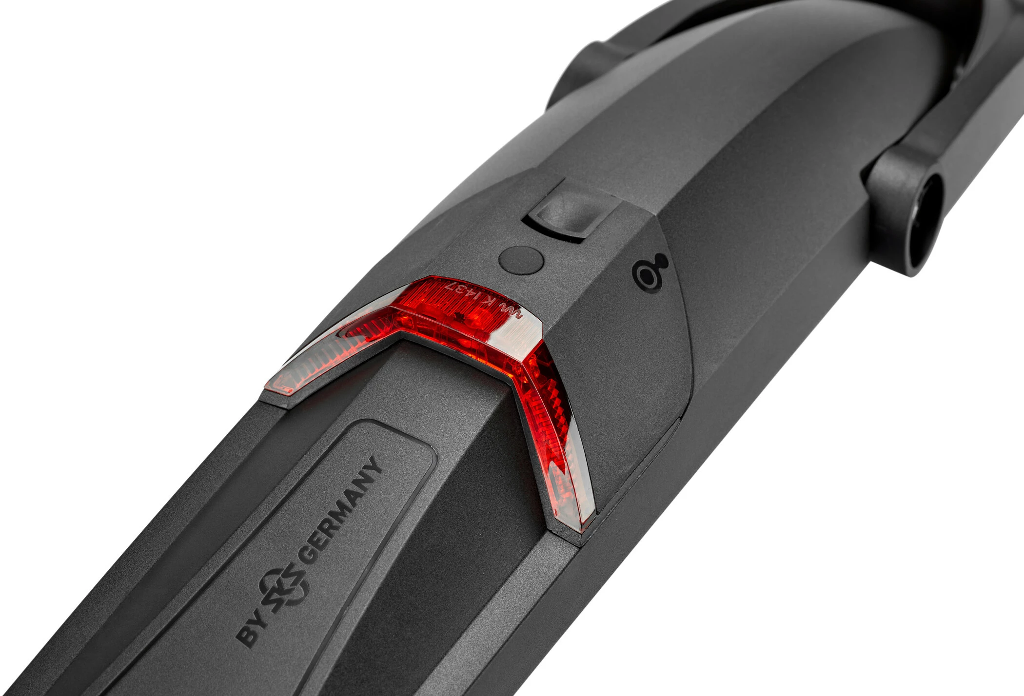 Mit dem innovativen MonkeyLink-System können 2-Komponenten-Radschützer einfach und sicher befestigt werden. Magnetische Halterungen machen die Montage kinderleicht. Besonders praktisch: Die integrierte Beleuchtung im hinteren Radschutz übernimmt die Funktion des Rücklichts, das bei E-Mountainbikes dank des MonkeyLinks mit Strom aus dem Akku versorgt wird. Der SKS GERMANY-Radschutz ist für übliche Mountainbike-Bereifungen sowie Mountainbike Plus-Bereifungen geeignet und kann durch die variable Einstellmöglichkeit für jede Rahmengeometrie genutzt werden.