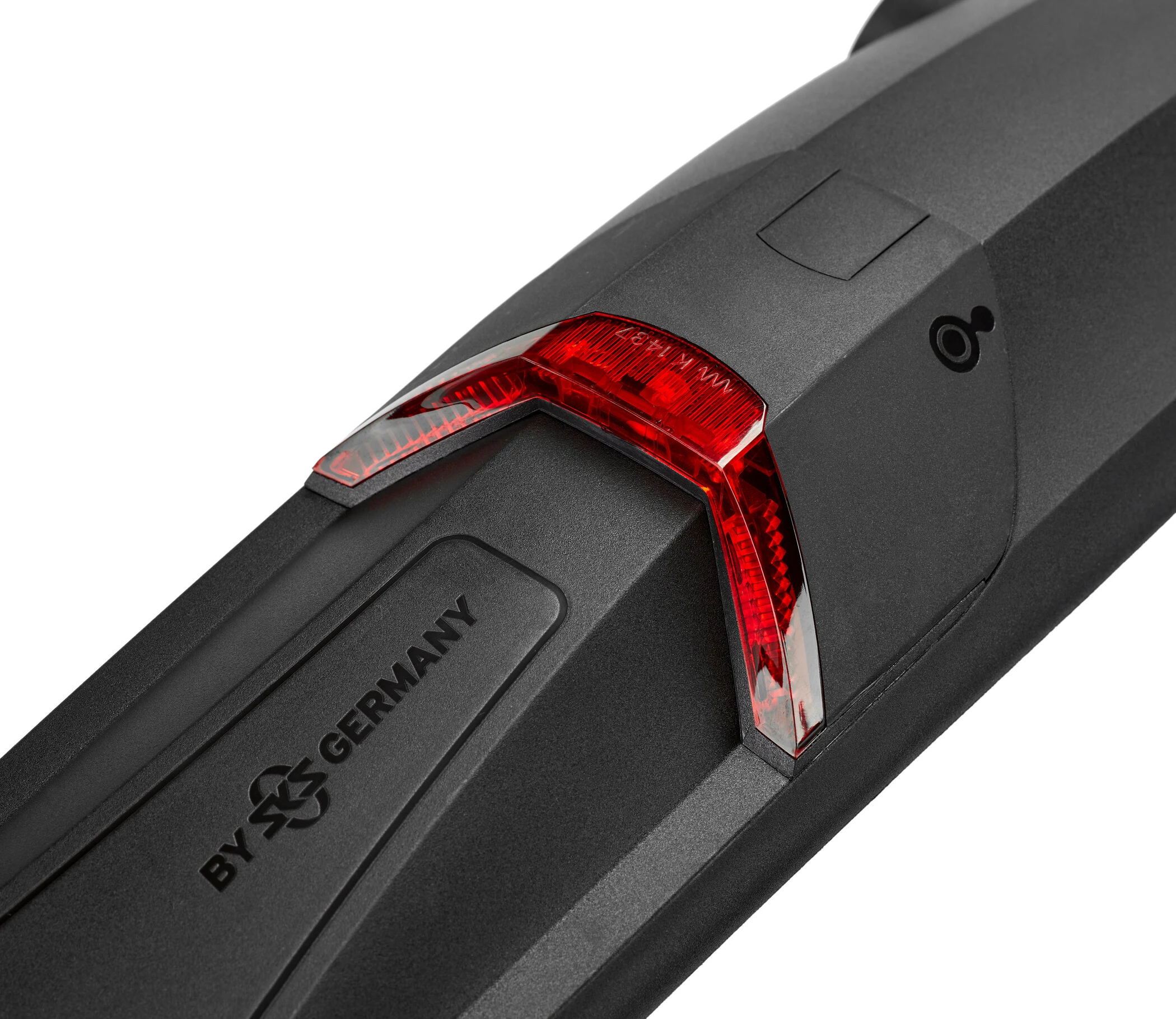 Mit dem innovativen MonkeyLink-System können 2-Komponenten-Radschützer einfach und sicher befestigt werden. Magnetische Halterungen machen die Montage kinderleicht. Besonders praktisch: Die integrierte Beleuchtung im hinteren Radschutz übernimmt die Funktion des Rücklichts. Mit der MonkeyLink Recharge-Version profitieren auch herkömmliche Fahrräder von der smarten Verbindung. Der SKS GERMANY-Radschutz ist für übliche Mountainbike-Bereifungen sowie Mountainbike Plus-Bereifungen geeignet und kann durch die variable Einstellmöglichkeit für jede Rahmengeometrie genutzt werden.