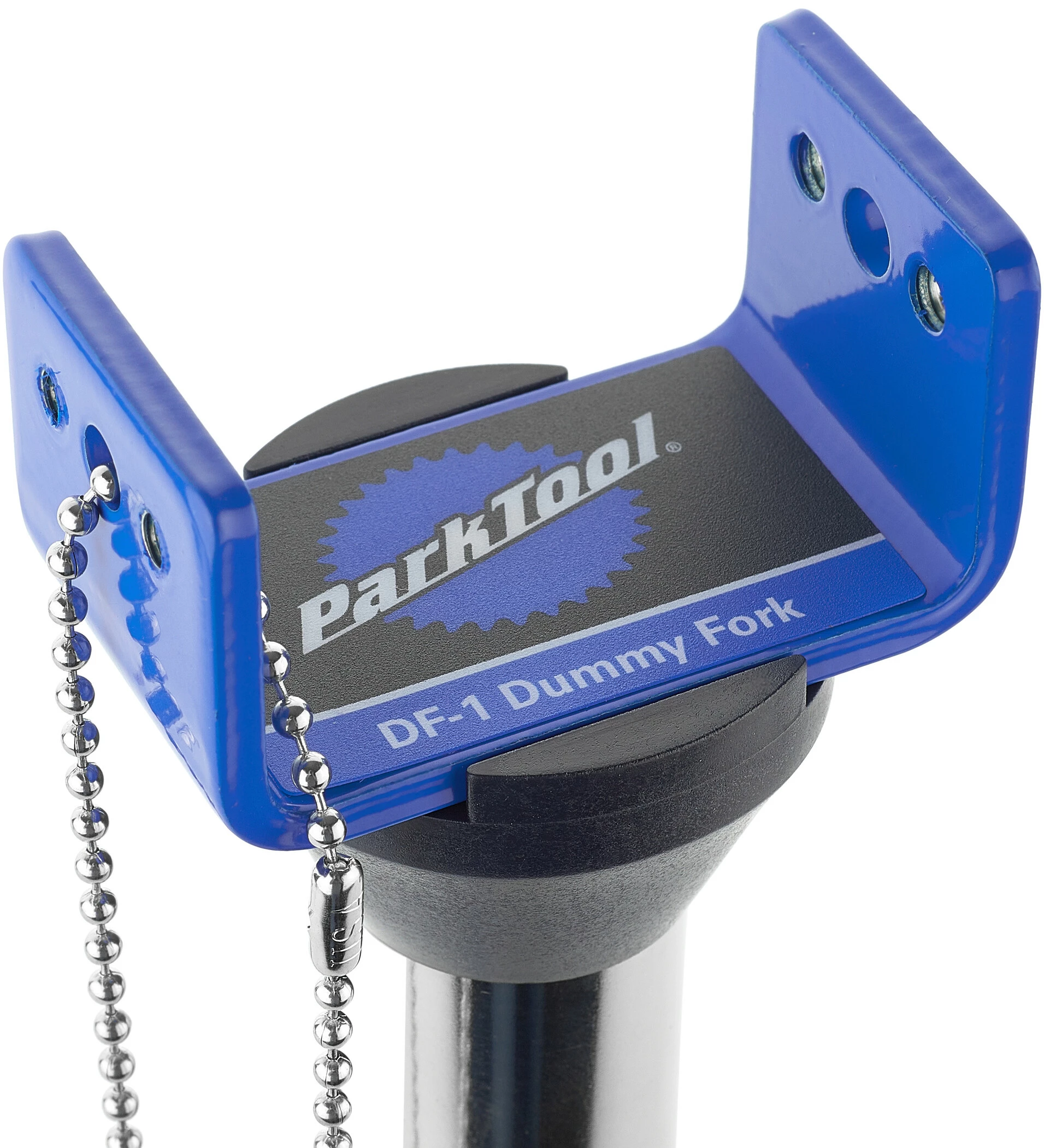 Die DF-1-Dummy Gabel ist ein unentbehrlicher Begleiter für alle Szenarien, bei denen die Gabel vom Fahrrad fallen gelassen werden muss. Sie ermöglicht den vollständigen Ausbau der Gabel, während Lenker, Steuersatzabstandshalter und Bremssattel organisiert bleiben. Die DF-1 wird in den Steuersatz eingebaut und über den Vorbau des Fahrrads in Position gehalten. Der Bremshalter verfügt über Gewinde- und gewindelose Löcher zur Befestigung von Scheibenbremssätteln sowie der meisten Felgenbremssättel, während der mitgelieferte Belagabstandshalter hydraulische Scheibenbremsen vor versehentlichem Einrasten schützt. Der DF-1 ist vernickelt und pulverbeschichtet für eine lange Lebensdauer.