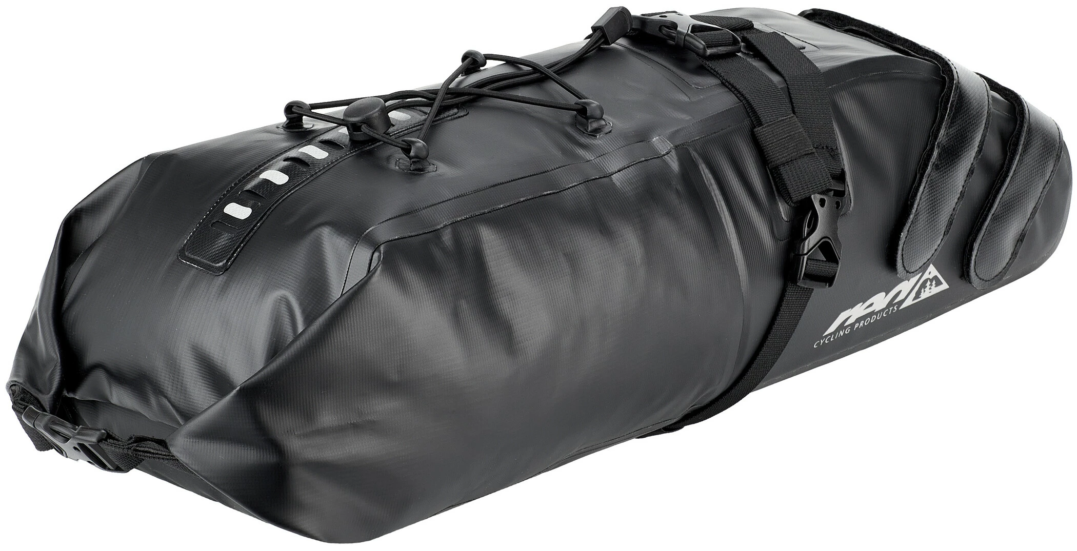 Du kannst du die Tasche dann mit leichten und komprimierbaren Dingen richtig vollmachen. Mit dem Rollverschluss komprimierst du die Tasche und passt sie an den Füllungsgrad an. Obendrauf hat sie auch einen Spanngurt für die Dinge, an die du schnell herankommen möchtest. Vielleicht das trockene Trikot für die bevorstehende Abfahrt?