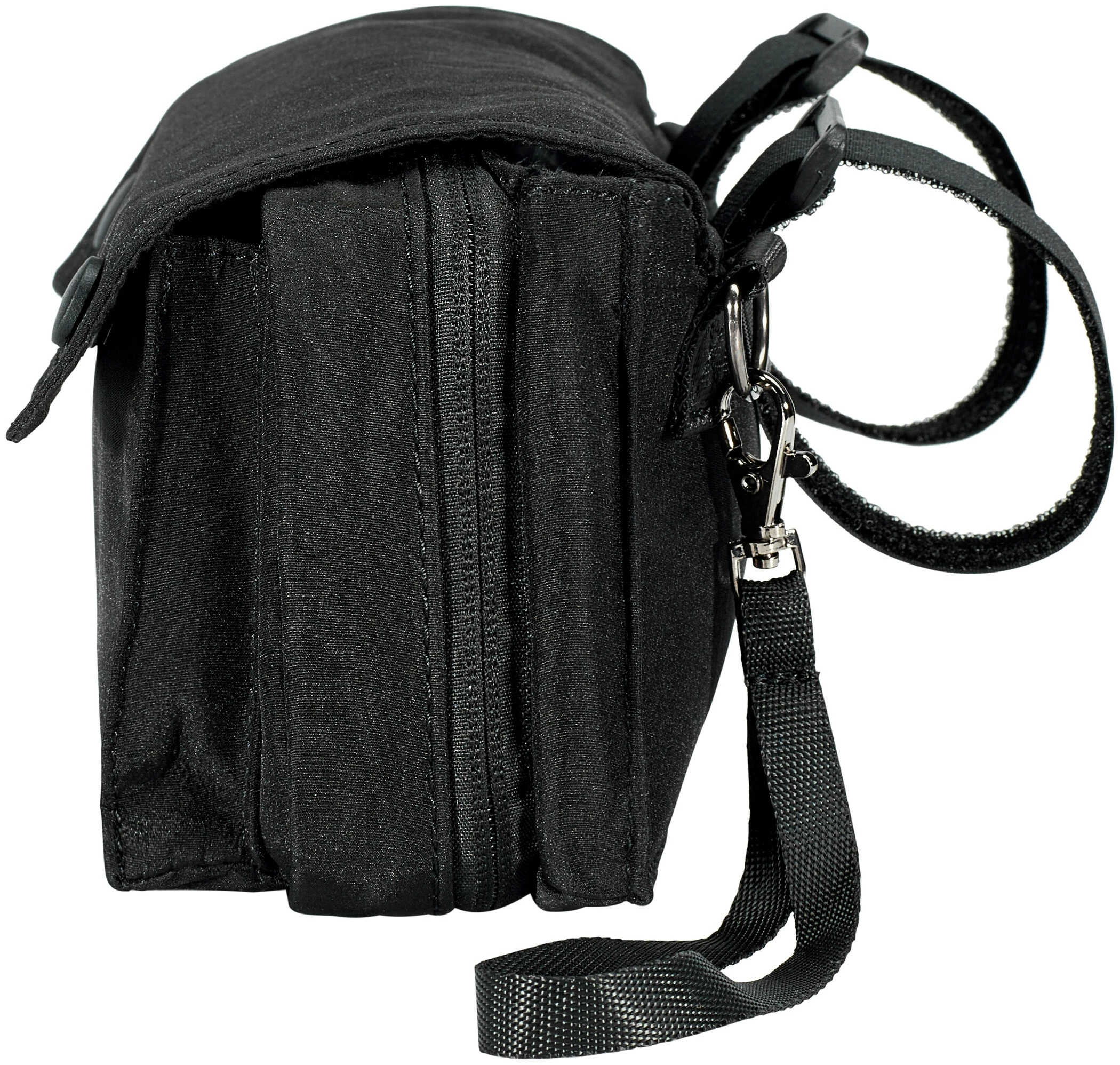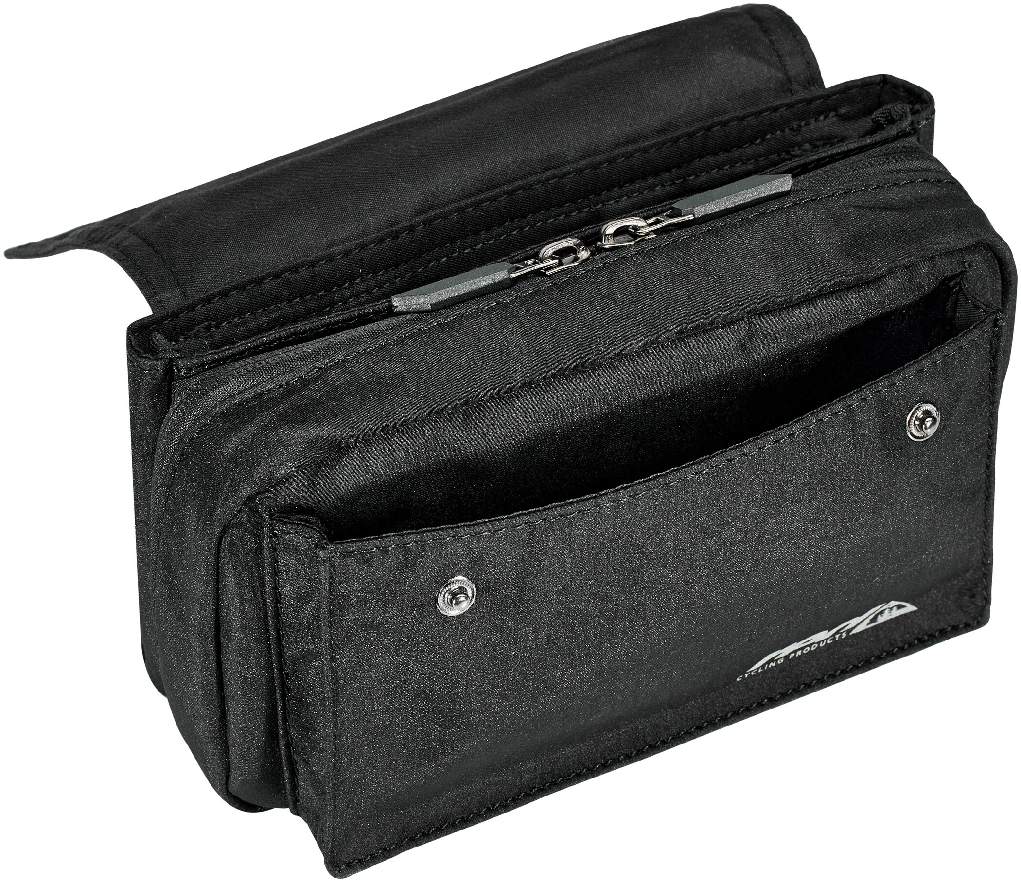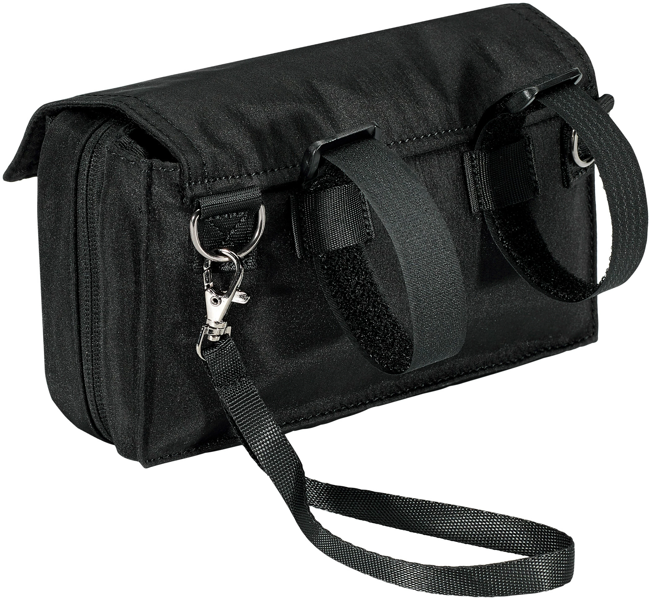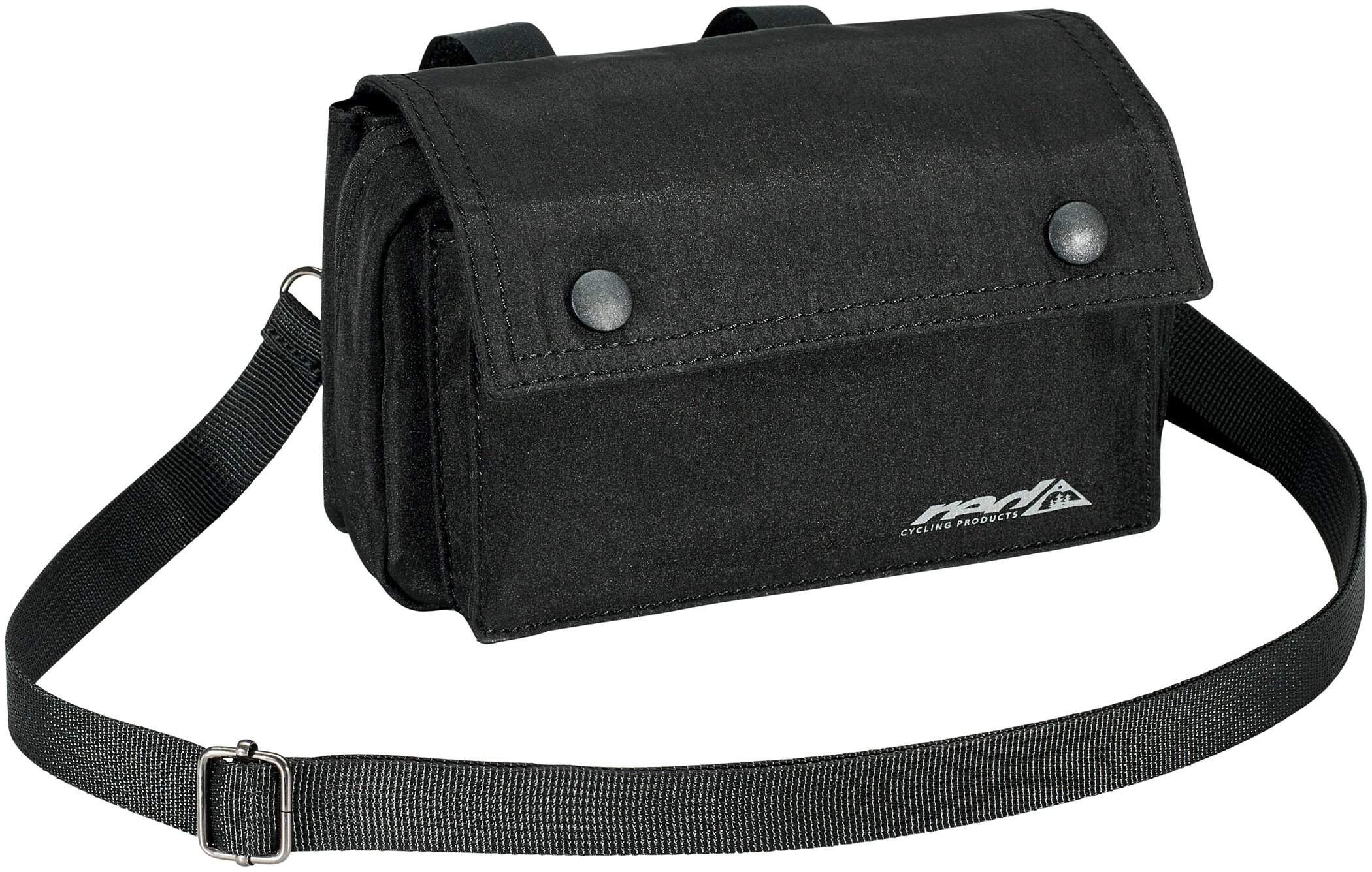 Die Tasche wird mit den kürz- und abnehmbaren Klettbändern am Lenker befestigt und hat drei geräumige Fächer mit insgesamt 1,4 Litern Volumen, das erleichtert das Sortieren von Schlüssel, Handy und Co. Eine Regenhülle ist inklusive, falls du von einem Schauer überrascht wird.