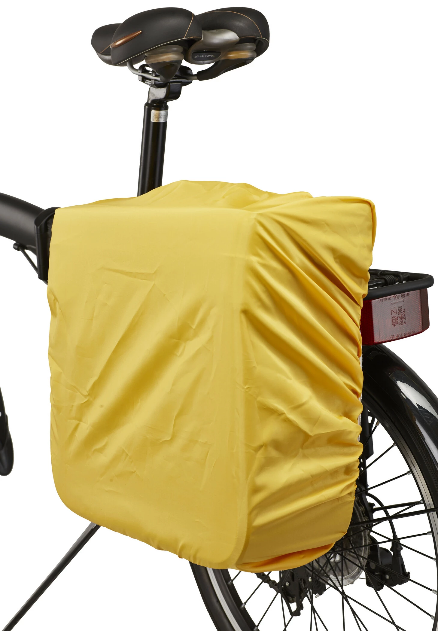 Der RCP-Regenschutz für Radtaschen kann in zwei Handgriffen ganz einfach über jede handelsübliche Gepäckträger-Packtasche gezogen werden, wenn du unterwegs vom Regen überrascht wirst. So sind Packtasche und Inhalt gut geschützt und die Fahrt kann ohne Bedenken fortgesetzt werden. Das leuchtende Gelb erhöht dabei deine Sichtbarkeit zusätzlich.