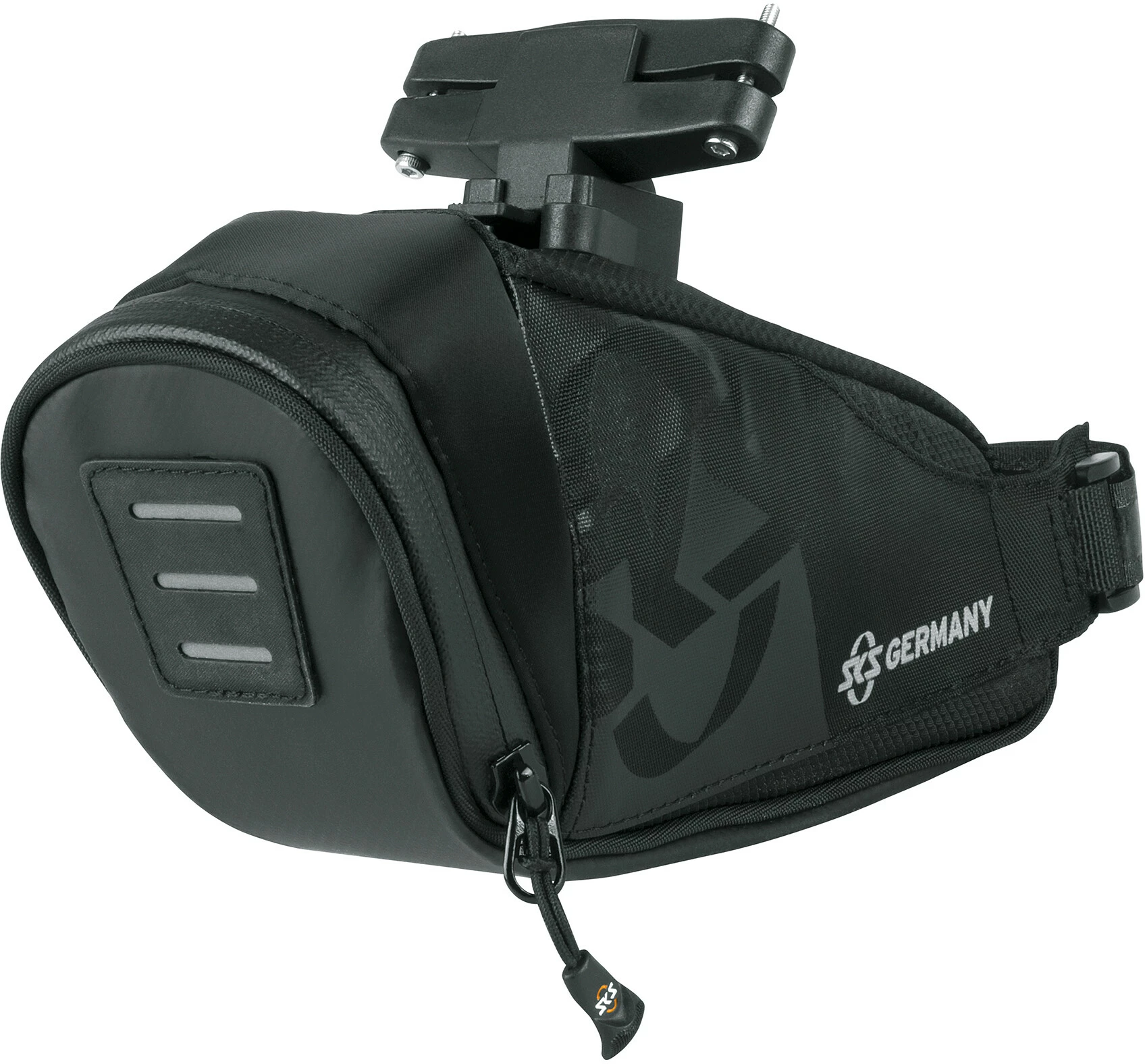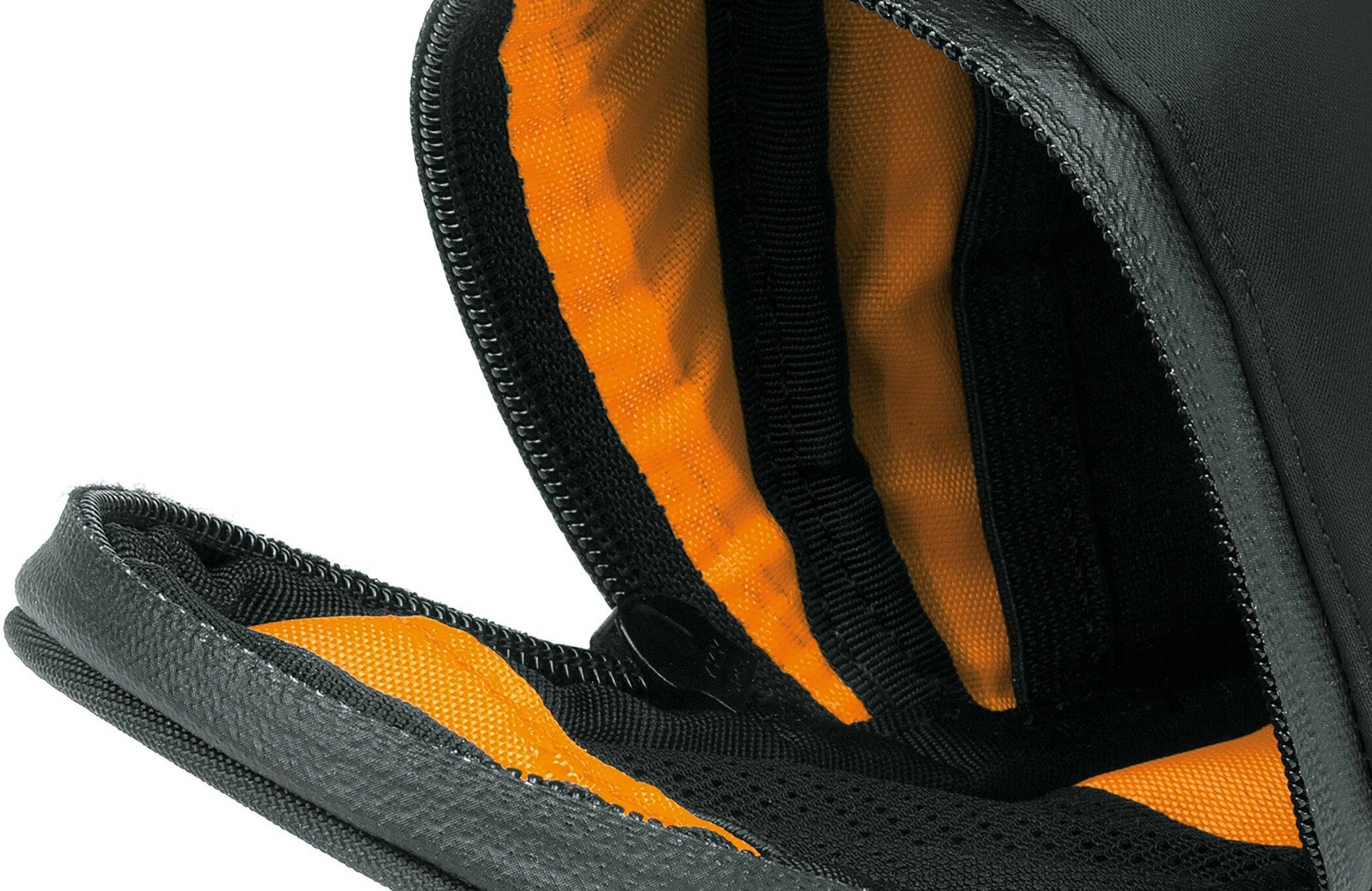 Leicht, funktionell und aerodynamisch. Die schlanken Fahrradtaschen RACER aus robustem, wasserabweisendem Gewebe integrieren sich optimal am Rennrad und bieten dennoch ausreichend Platz für Tools, Ersatzschlauch und sonstige Kleinigkeiten. Reflektierende Elemente wie das SKS-Logo sorgen für Sicherheit im Dunkeln. Neben dem stylishen Design überzeugen die Taschen mit weiteren Features wie laminierten Reißverschlüssen mit ergonomischem Easy-Zip, praktischen Innentaschen oder dem orangefarbenen Innenfutter zum leichteren Finden der Utensilien.