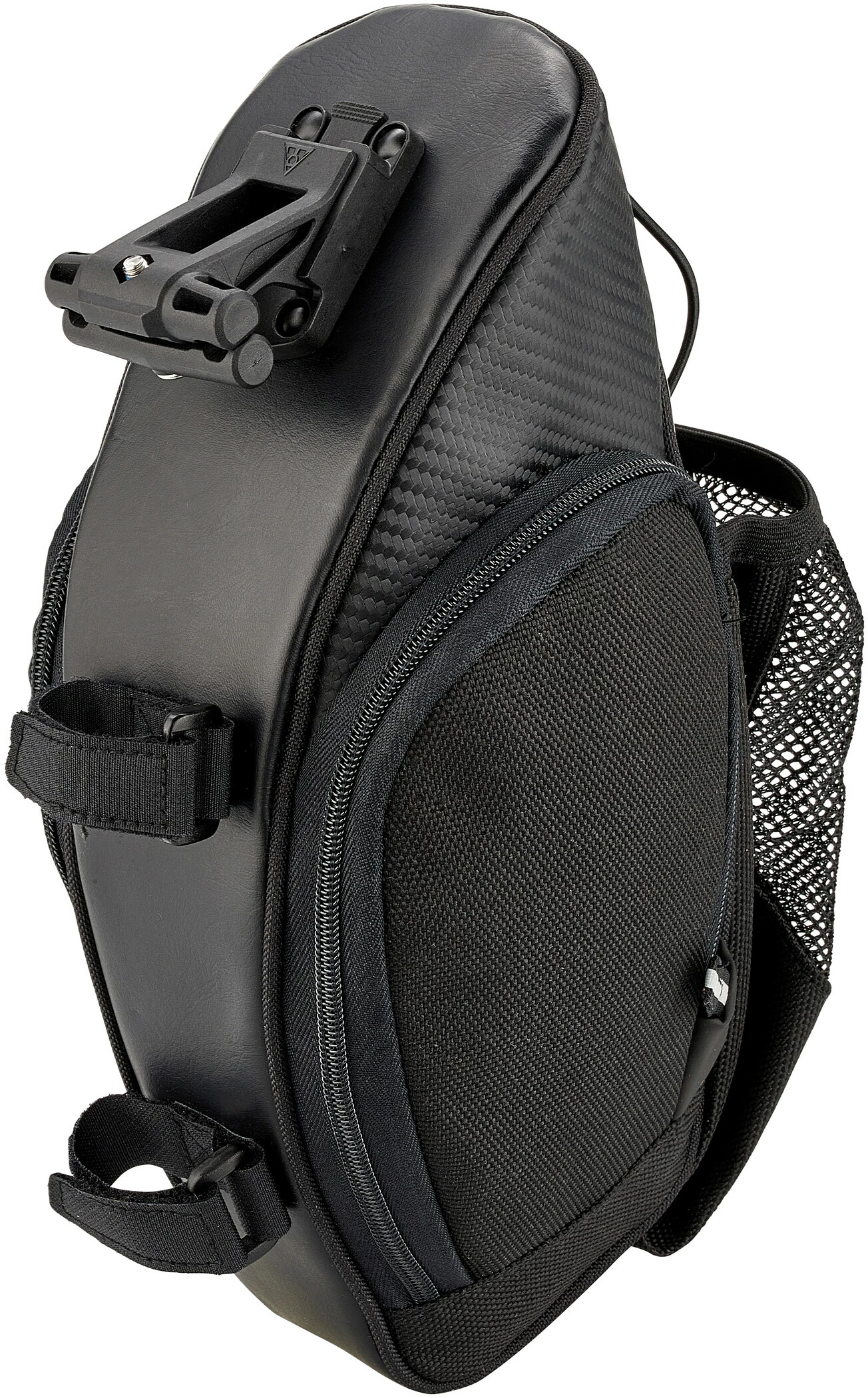 Die Tasche bietet durch den eingebauten Flaschenhalter Platz für eine weitere Flasche während der Tour. Sekundenschnell an- und abgesteckt durch F25 QuickClick-Halter und zwei Klettverschlüsse an der Sattelstütze.