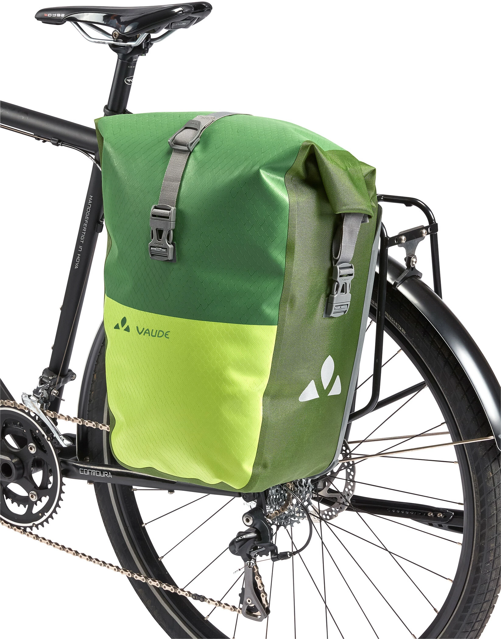 Mit der Aqua Bag Color Single bist Du bereit für die große, weite Welt! Die wasserdichte Hinterradtasche mit dezenter Colourblock-Optik wird aus robustem, PVC-freiem Planen-Material klimaneutral am deutschen VAUDE-Standort in der Nähe des Bodensees hergestellt. Sie lässt sich durch den Wickelverschluss auf individuelle Größen bringen und absolut dicht verschließen.