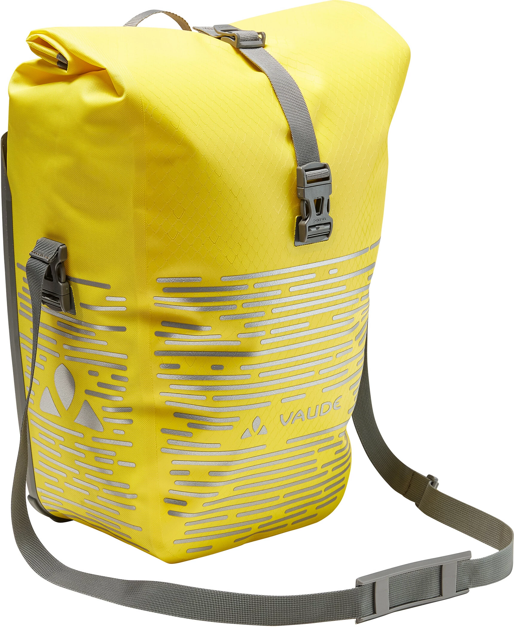 Für Pendler, die auch im Dunkeln unterwegs sind! Die wasserdichten Hinterradtaschen mit großem, stark reflektierenden Druck werden aus robustem, PVC-freiem Planen-Material am deutschen VAUDE-Standort in der Nähe des Bodensees im Hochfrequenz-Schweißverfahren hergestellt. Sie lassen sich durch den Wickelverschluss auf individuelle Größen bringen und absolut dicht verschließen.