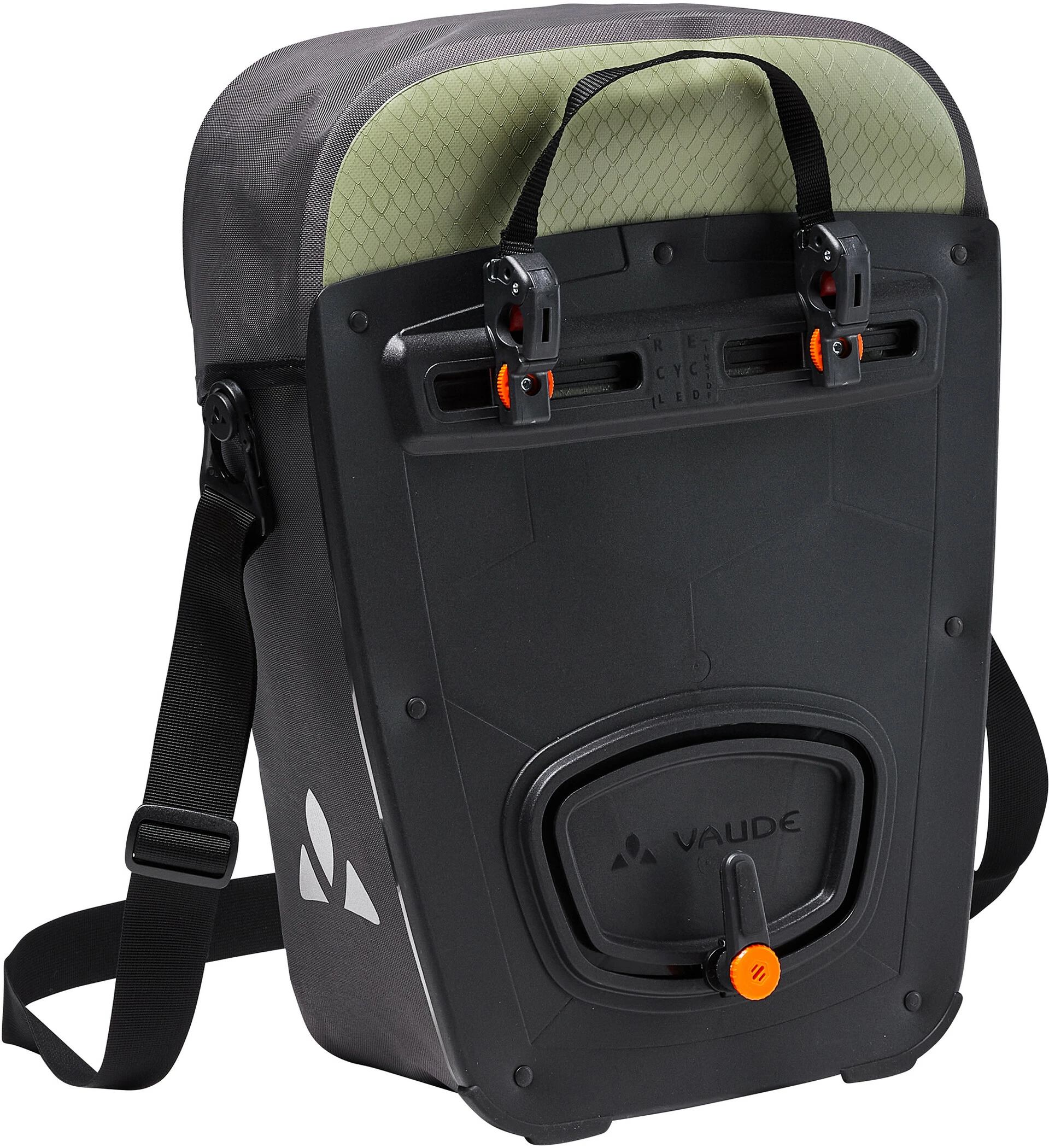 Der Hartschalen-Taschenrücken “Hard Back 2.0” besteht aus stabilem Kunststoff. So ist deine VAUDE-Radtasche extrem stoß- und abriebfest. Die stark beanspruchten Kanten sind mit rutschfesten Standfüßen ausgestattet. Den unteren Führungshaken kannst du frei um 360 Grad drehen. So lässt sich deine Radtasche ganz flexibel an jeden Gepäckträger anpassen. Die maximale Beladung beträgt 12,5 kg pro Tasche.
