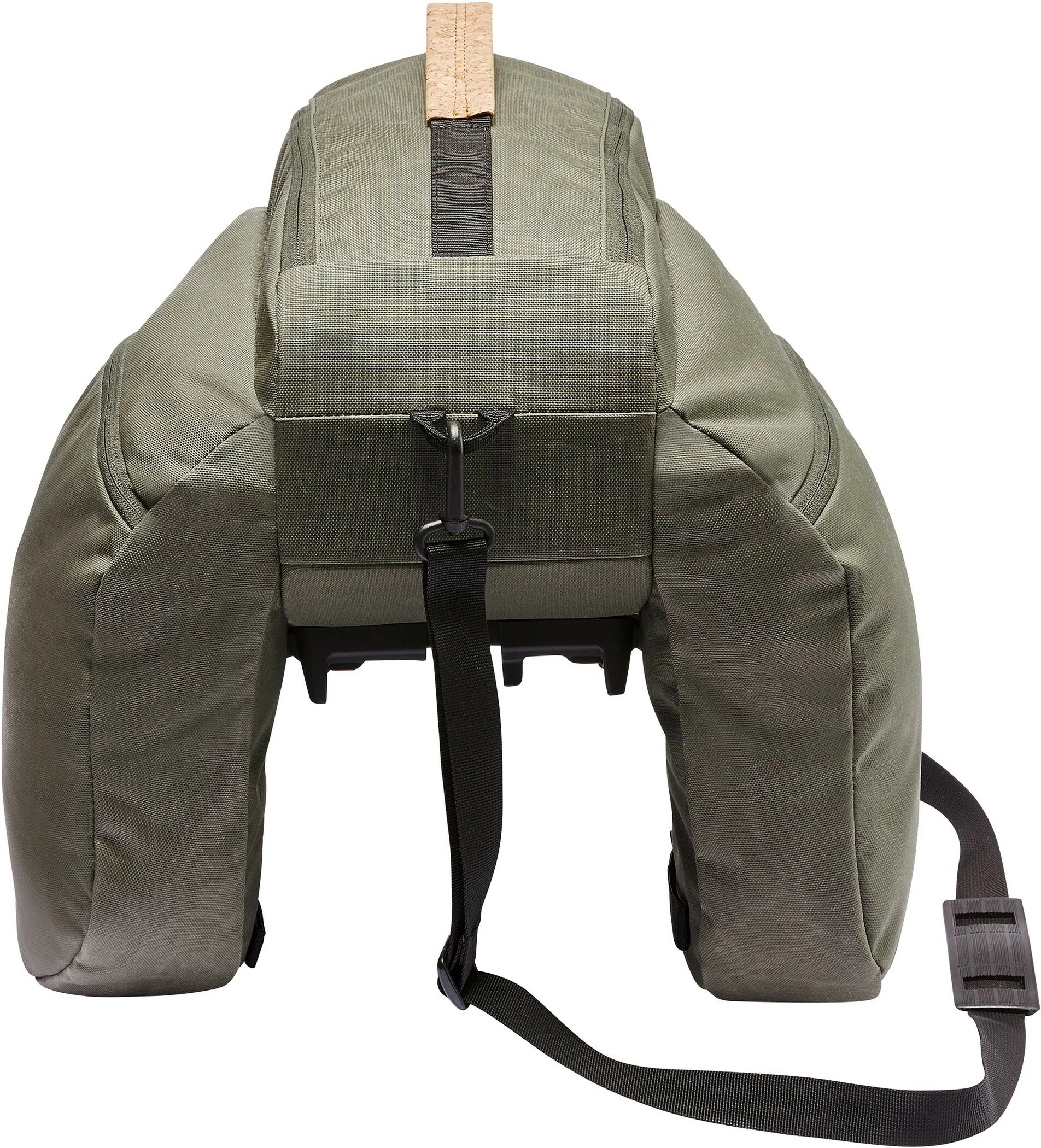Ein abnehmbarer Schulterträger, eine Befestigung für ein Rücklicht und reflektierende Elemente runden die Ausstattung der eSilkroad Plus Fahrradtasche optimal ab. Klein aber fein sind auch die Details. Patches aus Kork, welche sich am Griff und der Blicklichthalterung befinden, fühlen sich nicht nur haptisch gut an, sondern stechen auch optisch hervor.