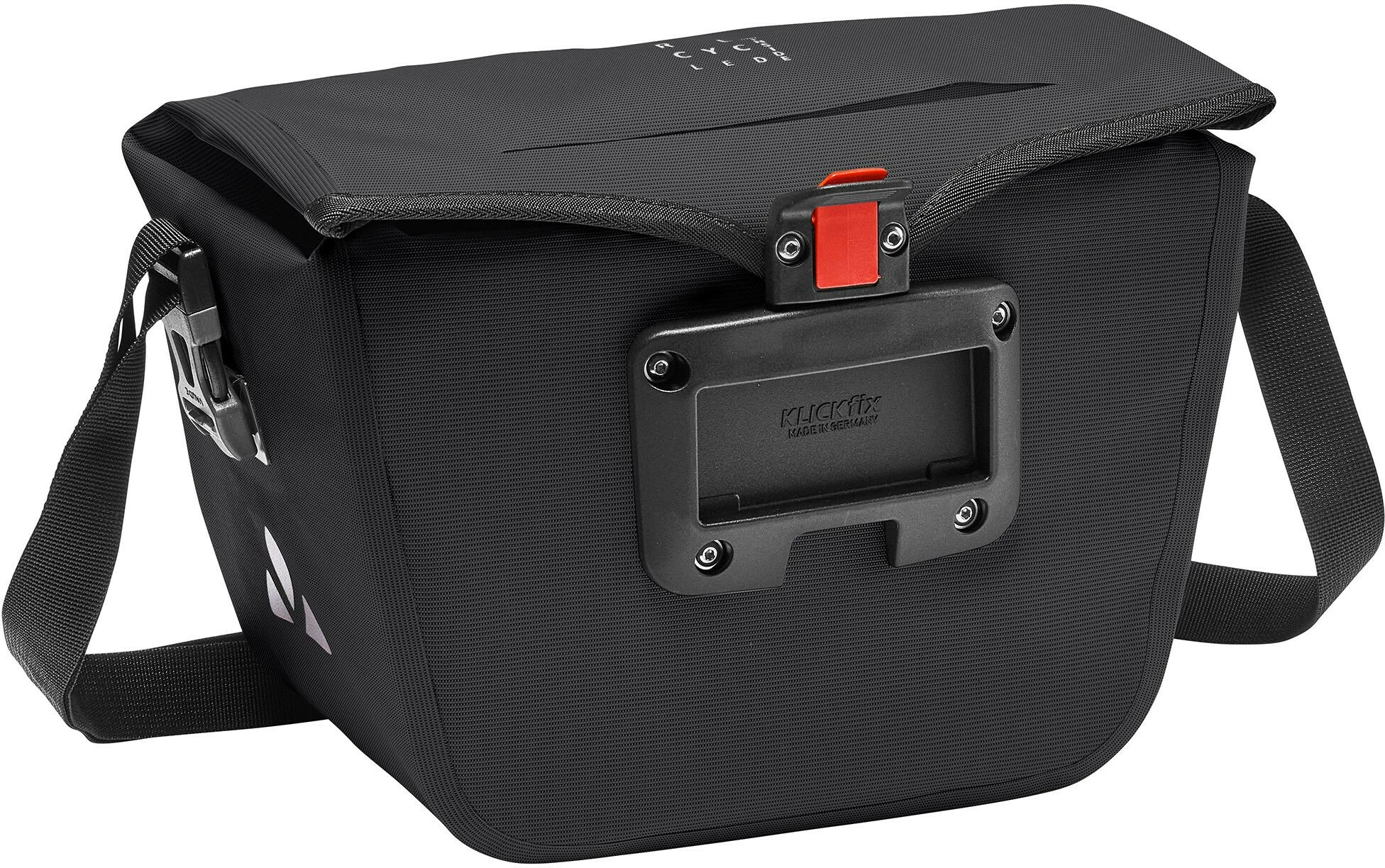 Wasserdicht verschweißte kompakte Lenkertasche zum Radfahren mit abnehmbarem Schultergurt. Modernes Design mit praktischer Gepäckspinne und Reflexlogo.