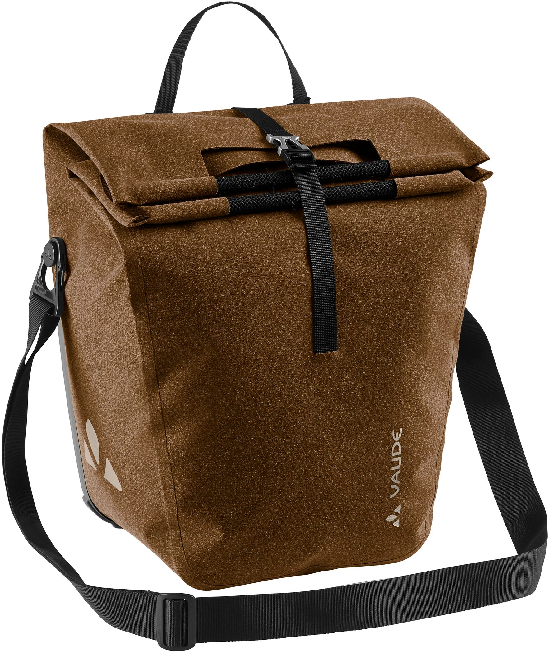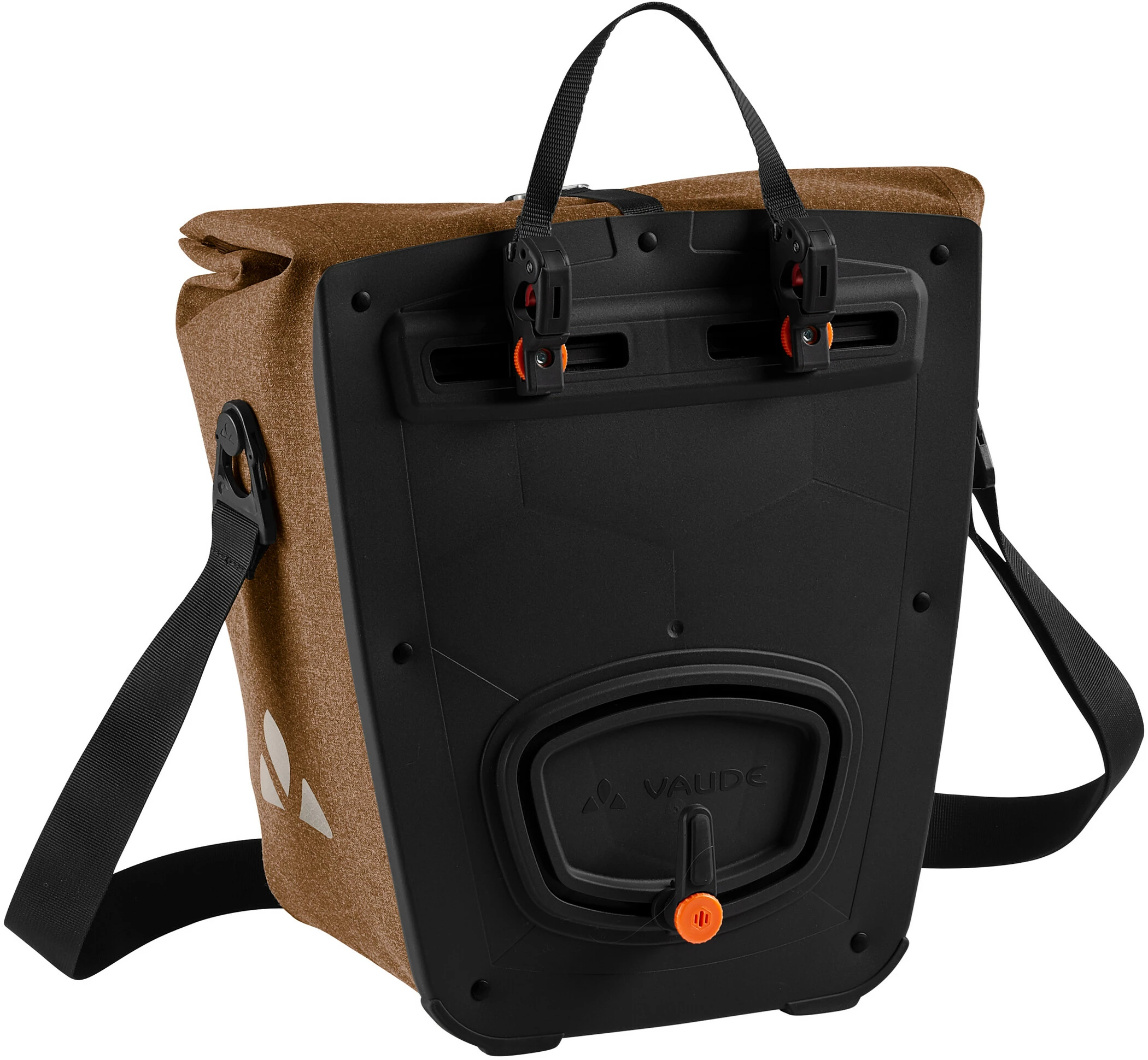 Die stylishen Taschen im Shopper-Design kommt mit stabilen, weich mit Polyesterband überzogenen Griffen, einem Rundhalsausschnitt für einen vergrößerten Eingriff und einem Staubalg zur besseren Fixierung des Inhaltes. Der abnehmbare Schultergurt und reflektierende Logos runden die Ausstattung ab. Die Tasche ist Bestandteil des Made in Germany Sortimentes von Vaude. Mit einem kleinen Bügelschloss (z. B. Abus 145/20) kann die ReCycle Back direkt am QMR-Haken verriegelt werden.