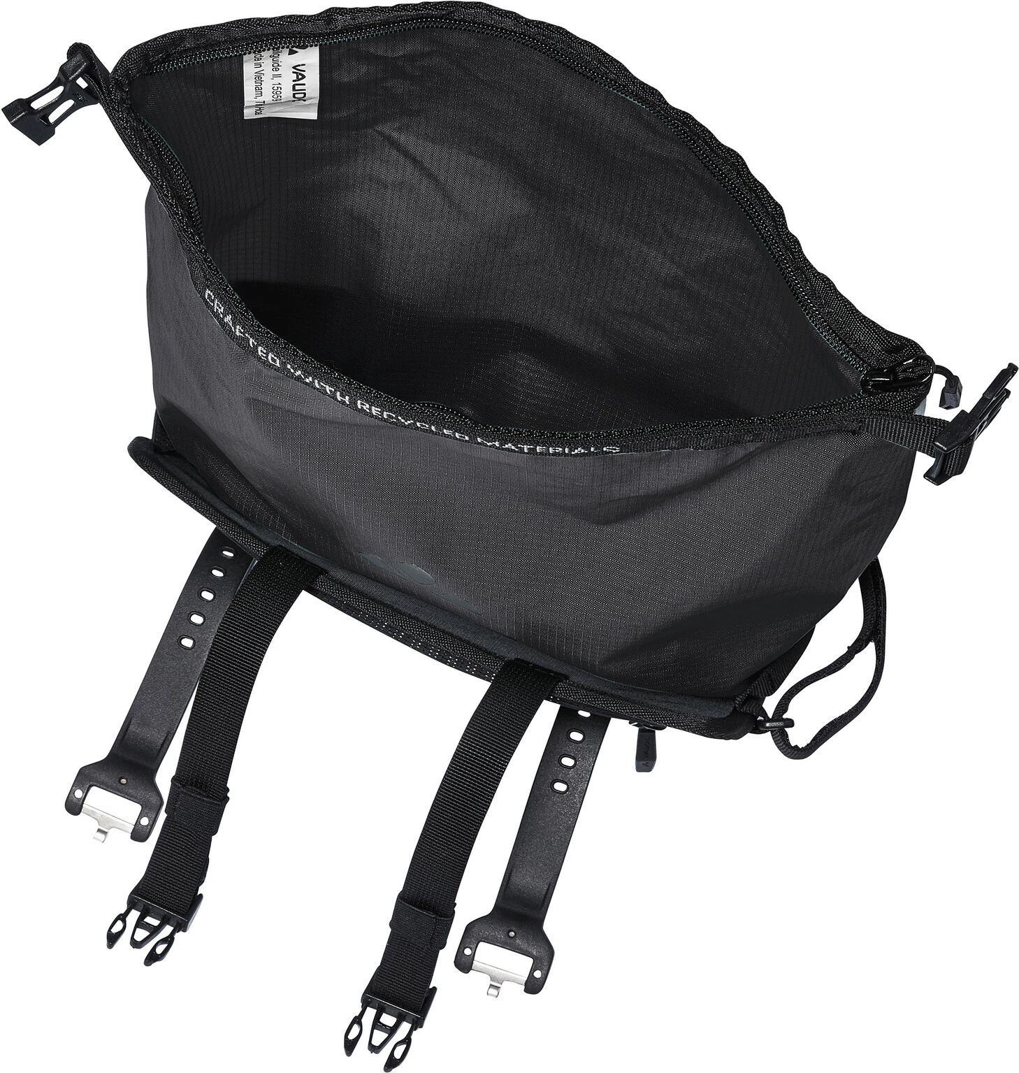 Trailguide ist eine Bikepacking Tasche, wie sie im Buche steht! Mit ihrer schlanken, 3 l fassenden Größe ist sie das perfekte Puzzleteil für alle, die ihr Gepäck sinnvoll am Rad verteilen wollen und Sicherhiet zu schätzen wissen. Sie fasst alle wichtigen Utensilien wie Reisedokumente, Smartphone oder Geldbeutel, die man schnell griffbereit und immer im Blick haben wil. Die Halterung der Trailguide wird auf dem Oberrohr mit 2 Straps befestigt und am Lenkerrohr über einen Klettverschluss sicher gegen Verrutschen befestigt. Zwei kleine elastische Seitentaschen halten Riegel oder Labello griffbereit. Die wasserdichte Packtasche wird mit Reißverschluss gesichert und je nach Beladung – max. 3 Liter – wasserdicht gewickelt und in der Halterung über zwei mit mit Steckschnalle geischerte Gurte fixiert. Soll bei einem Stop schnell mal was gekauft werden, ist die der Packsack schnell aus der Halterung entnommen und mit dem mitgelieferten Tragegurt umgehängt.