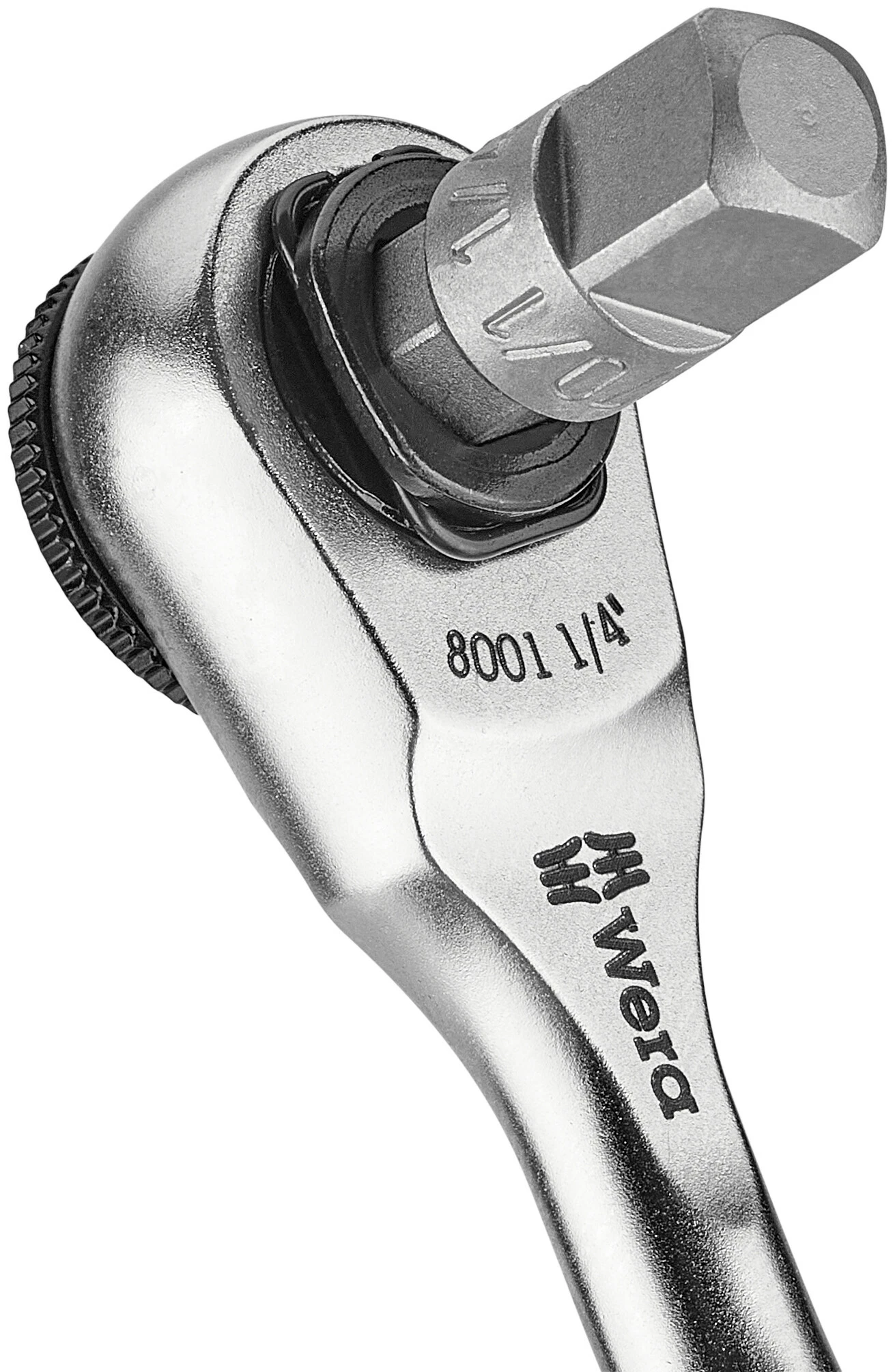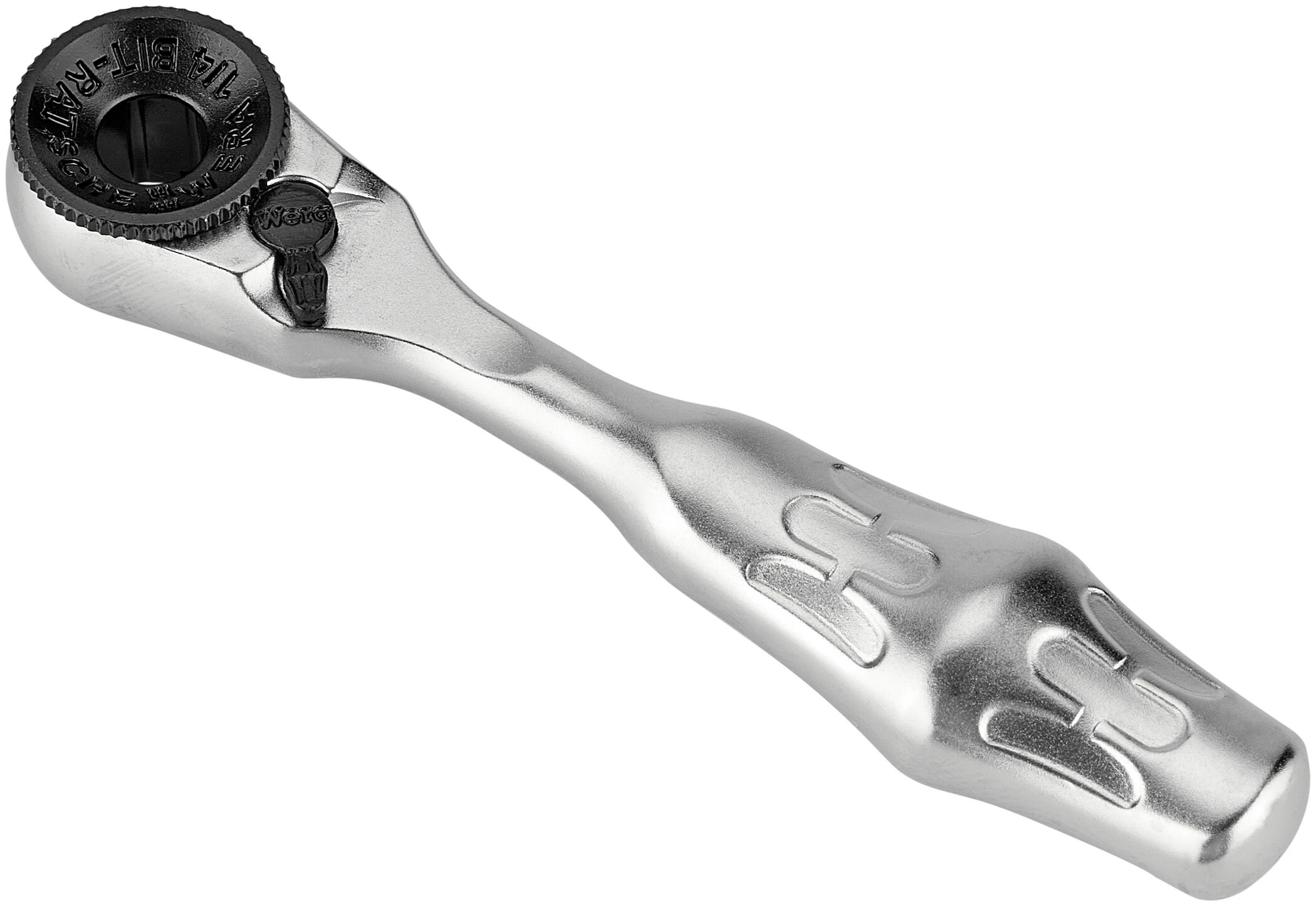 Die Wera Bit-Ratsche. Einfachste Bedienung auch mit nur einer Hand in beengten Schraubanwendungen. Gesenkgeschmiedete Vollstahlausführung. Feinzahnmechanik mit 60 Zähnen ermöglicht einen kleinen Rückholwinkel von 6° für präzises Arbeiten. Das Rändelrad erlaubt schnelles Schrauben in beengten Situationen, wenn kein Platz für das Ratschen ist. Einfache Links/Rechtsumschaltung. Ergonomisch geformter Knarrenkopf und -hebel. Für 1/4 Bit- und Nussaufnahme.